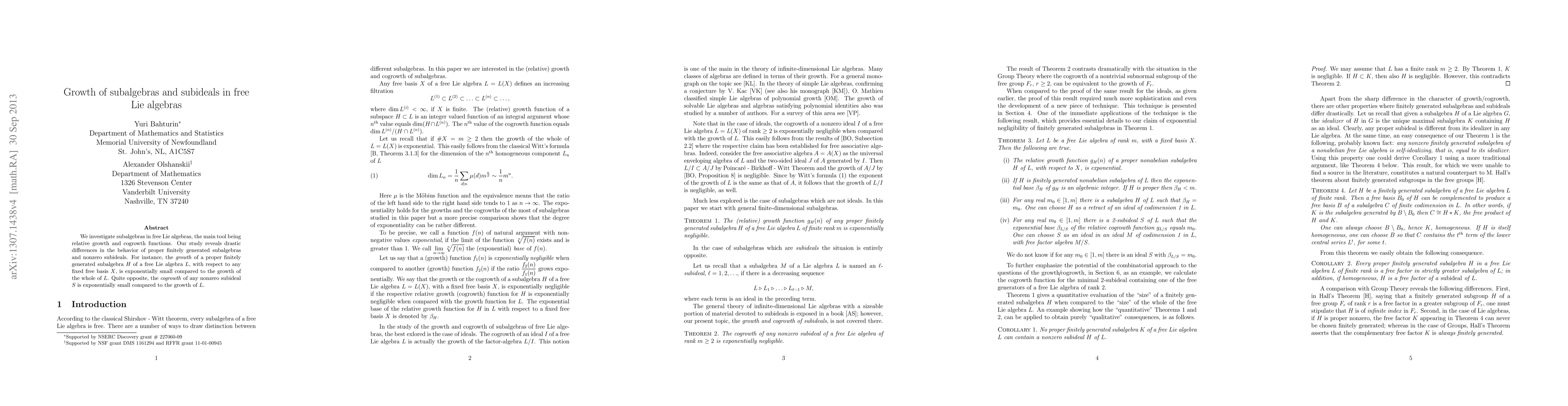 We investigate subalgebras in free Lie algebras, the main tool being relative growth and cogrowth functions. Our study reveals drastic differences in the behavior of proper finitely generated subalgebras and nonzero subideals. For instance, the \textit{growth} of a proper finitely generated subalgebra $H$ of a free Lie algebra $L$, with respect to any fixed free basis $X$, is exponentially small compared to the growth of the whole of $L$. Quite opposite, the \textit{cogrowth} of any nonzero subideal $S$ is exponentially small compared to the growth of $L$.