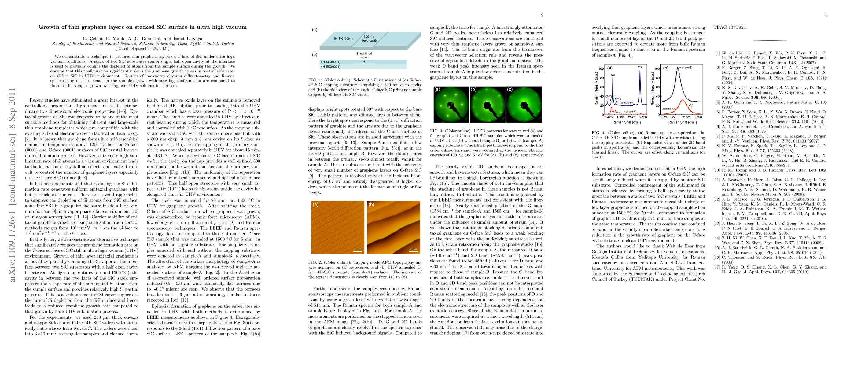 This paper presents a method to produce thin, controllable graphene layers on SiC using stacked SiC substrates to confine Si atoms, significantly slowing growth in ultra high vacuum. Comparative analysis via low-energy electron diffraction and Raman spectroscopy shows distinct differences between stacked and bare UHV processes.