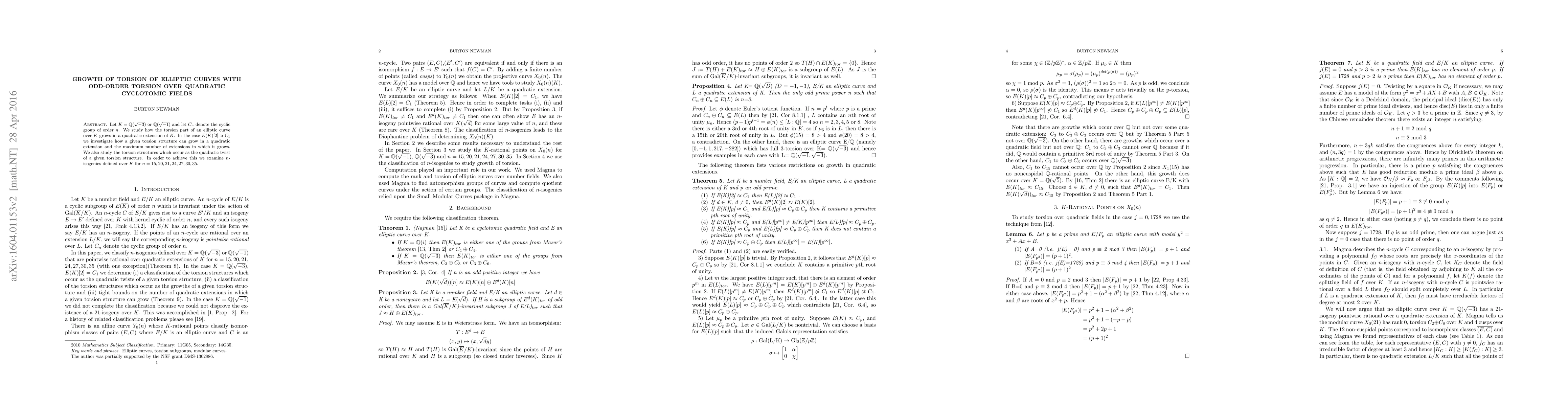 The paper presents a detailed analysis of torsion growth in elliptic curves over quadratic cyclotomic fields, employing isogeny techniques and modular curve properties.