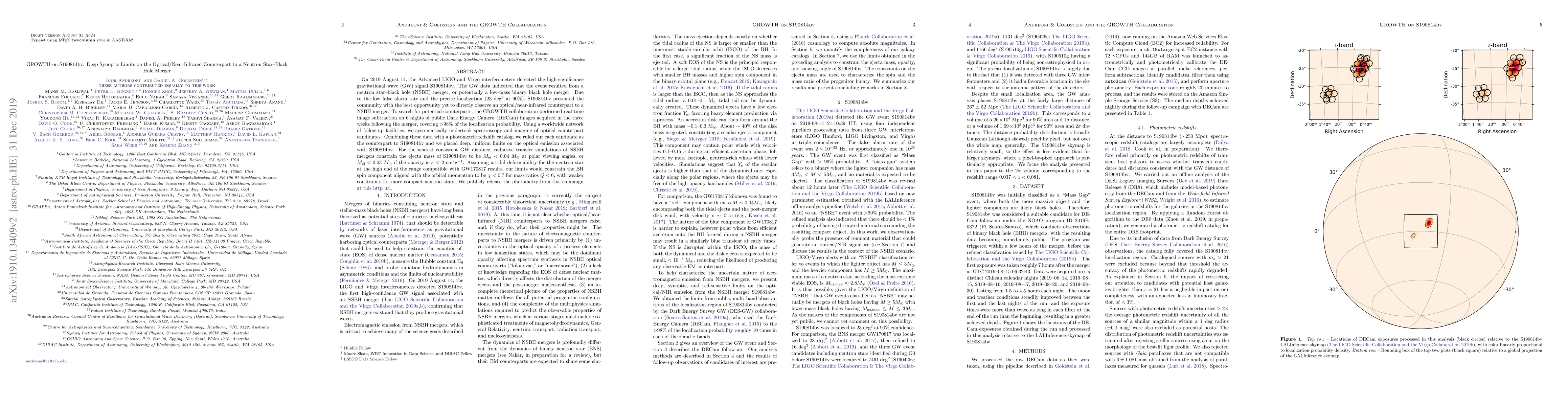 The GROWTH collaboration conducted an extensive search for the optical/near-infrared counterpart to the neutron star-black hole merger detected by LIGO/Virgo as S190814bv, but found no evidence of such a counterpart. They placed deep limits on the optical emission, constraining the ejecta mass and neutron star tidal deformability, and the black hole spin aligned with the orbital momentum.