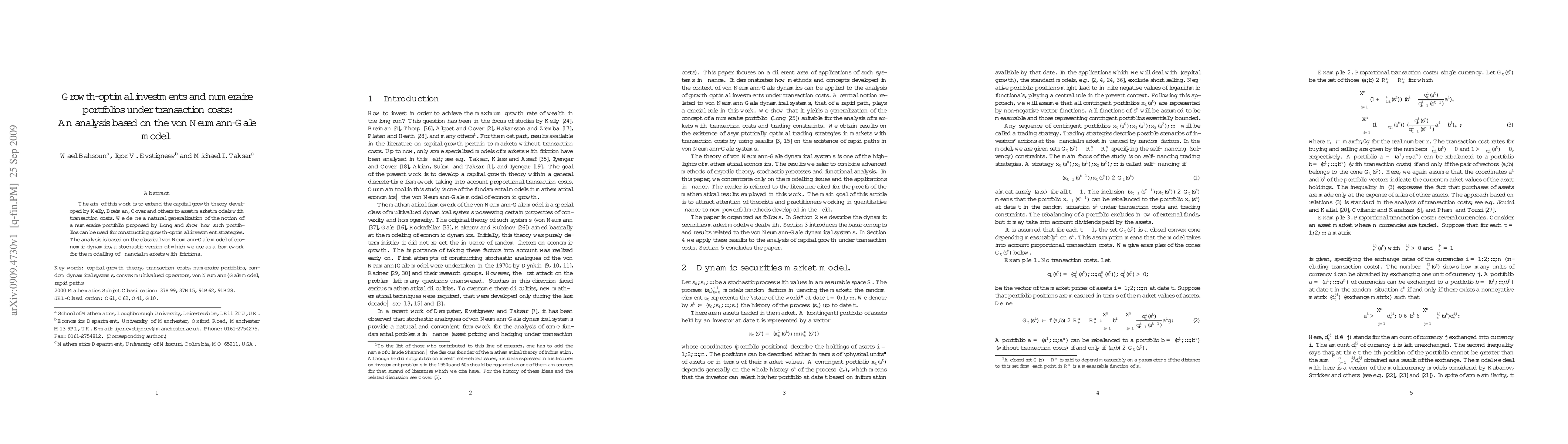 This paper extends capital growth theory to asset markets with transaction costs, defining a generalized notion of a numeraire portfolio and using it to construct growth-optimal investment strategies within the von Neumann-Gale model framework. The analysis incorporates a stochastic version of the classical von Neumann-Gale model to account for market frictions.