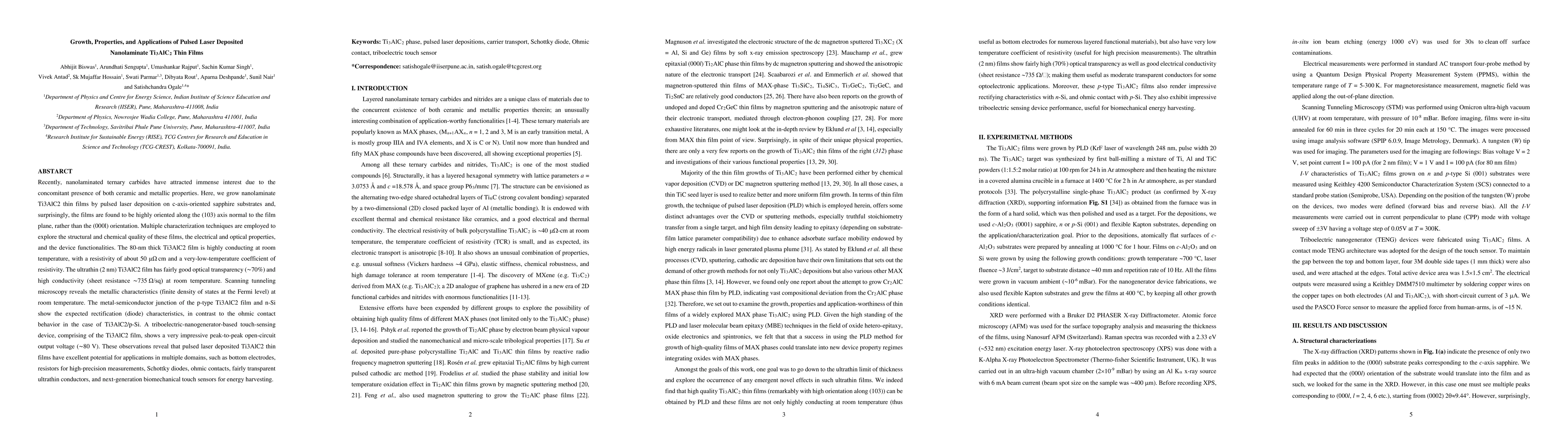 This paper investigates pulsed laser deposited Ti3AlC2 thin films, revealing highly oriented (103) axis growth and excellent electrical and optical properties. Applications include use in bottom electrodes, resistors, and biomechanical touch sensors.
