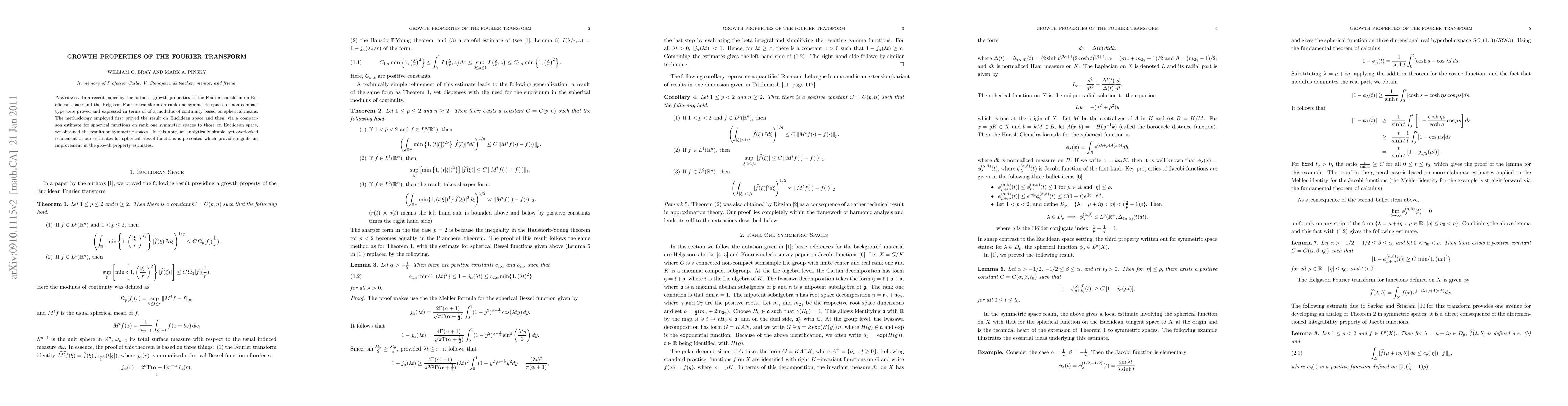 In a recent paper by the authors, growth properties of the Fourier transform on Euclidean space and the Helgason Fourier transform on rank one symmetric spaces of non-compact type were proved and expressed in terms of of a modulus of continuity based on spherical means. The methodology employed first proved the result on Euclidean space and then, via a comparison estimate for spherical functions on rank one symmetric spaces to those on Euclidean space, we obtained the results on symmetric spaces. In this note, an analytically simple, yet overlooked refinement of our estimates for spherical Bessel functions is presented which provides significant improvement in the growth property estimates.