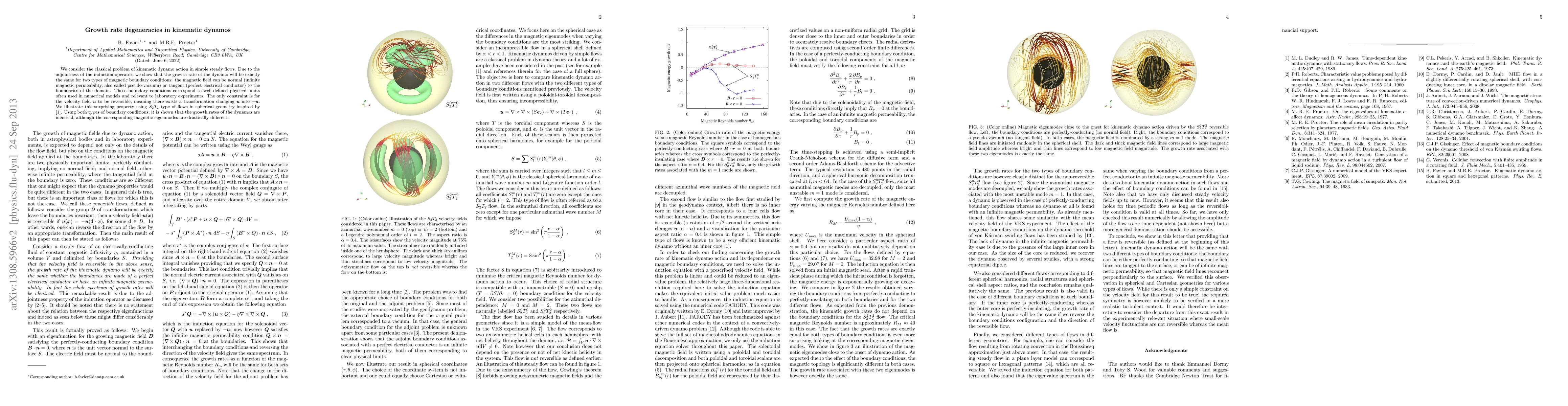 We consider the classical problem of kinematic dynamo action in simple steady flows. Due to the adjointness of the induction operator, we show that the growth rate of the dynamo will be exactly the same for two types of magnetic boundary conditions: the magnetic field can be normal (infinite magnetic permeability, also called pseudo-vacuum) or tangent (perfect electrical conductor) to the boundaries of the domain. These boundary conditions correspond to well-defined physical limits often used in numerical models and relevant to laboratory experiments. The only constraint is for the velocity field u to be reversible, meaning there exists a transformation changing u into -u. We illustrate this surprising property using S2T2 type of flows in spherical geometry inspired by Dudley and James (1989). Using both types of boundary conditions, it is shown that the growth rates of the dynamos are identical, although the corresponding magnetic eigenmodes are drastically different.