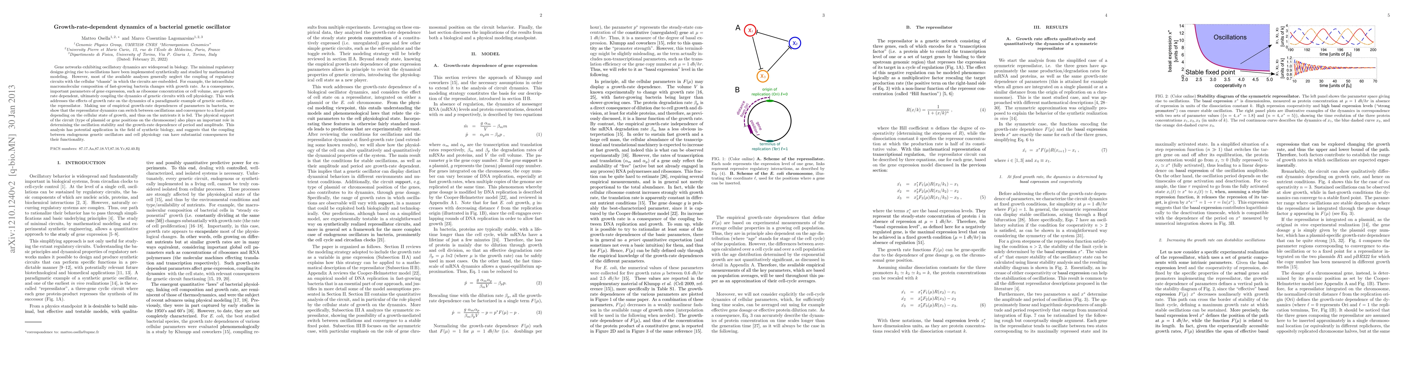 This study explores how growth rate influences the dynamics of a bacterial genetic oscillator, the repressilator, demonstrating that its behavior can shift from oscillations to fixed-point convergence based on the cellular growth state. The research highlights the importance of considering the coupling between genetic circuits and cellular physiology in synthetic biology applications.