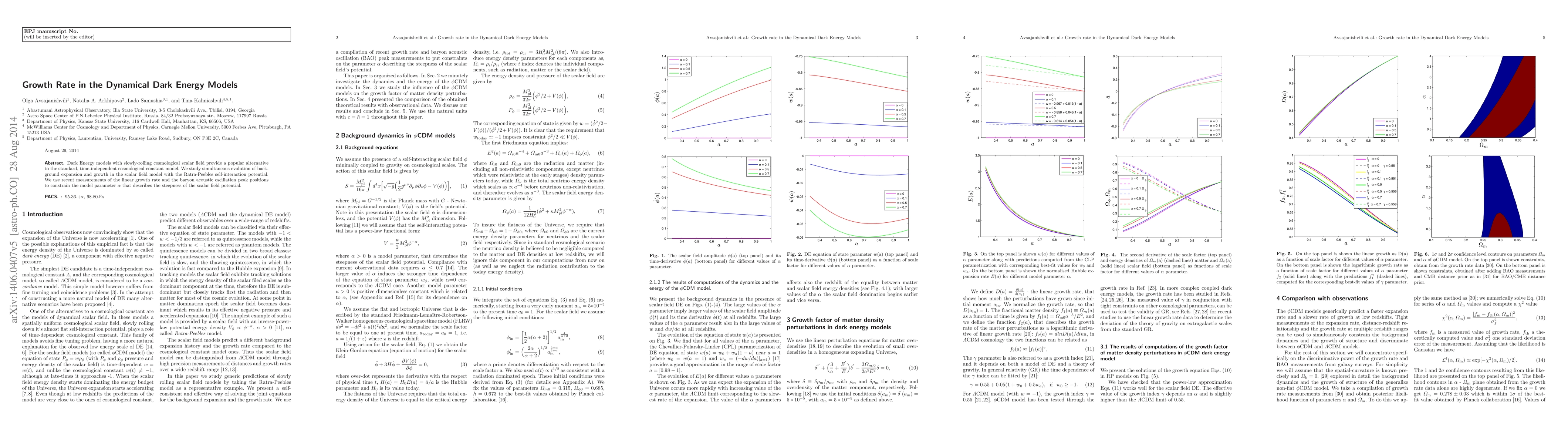 Dark Energy models with slowly-rolling cosmological scalar field provide a popular alternative to the standard, time-independent cosmological constant model. We study simultaneous evolution of background expansion and growth in the scalar field model with the Ratra-Peebles self-interaction potential. We use recent measurements of the linear growth rate and the baryon acoustic oscillation peak positions to constrain the model parameter $\alpha$ that describes the steepness of the scalar field potential.