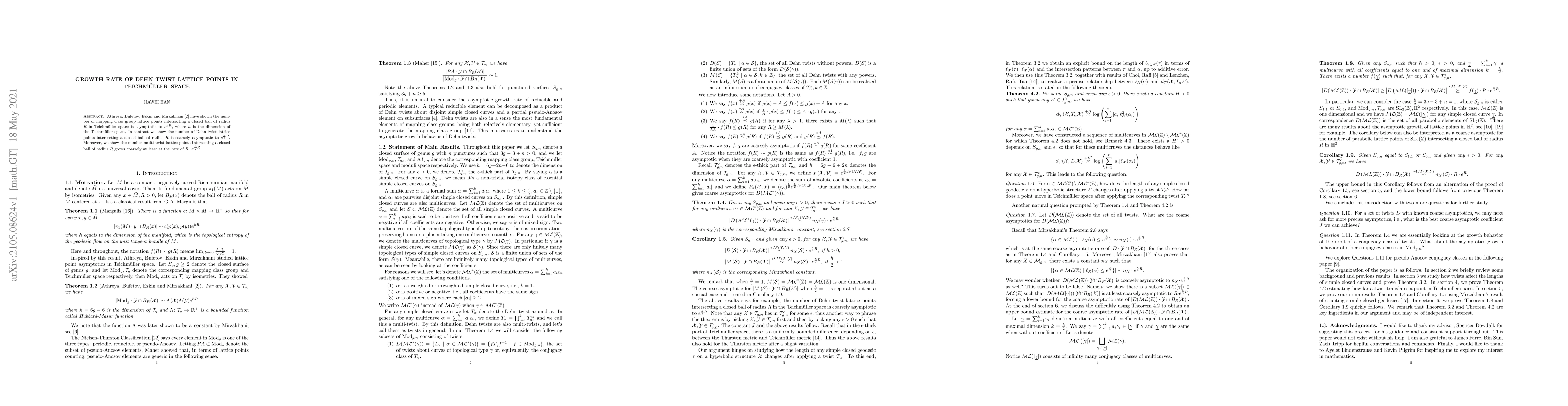 This research contrasts the growth rate of mapping class group lattice points with Dehn twist lattice points in Teichmüller space, demonstrating the latter grows coarsely at a rate of e^(h/2)R. It further extends this to multi-twist lattice points, showing their growth rate is at least R * e^(h/2)R, challenging previous findings by Athreya et al.