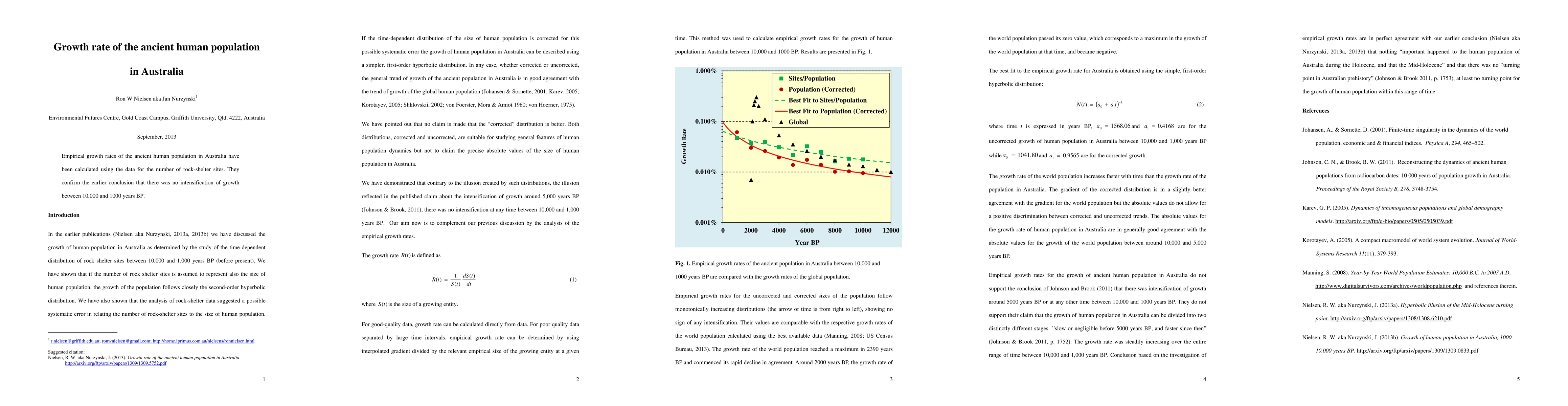 Empirical growth rates of the ancient human population in Australia have been calculated using the data for the number of rock-shelter sites. They confirm the earlier conclusion that there was no intensification of growth between 10,000 and 1000 years BP.