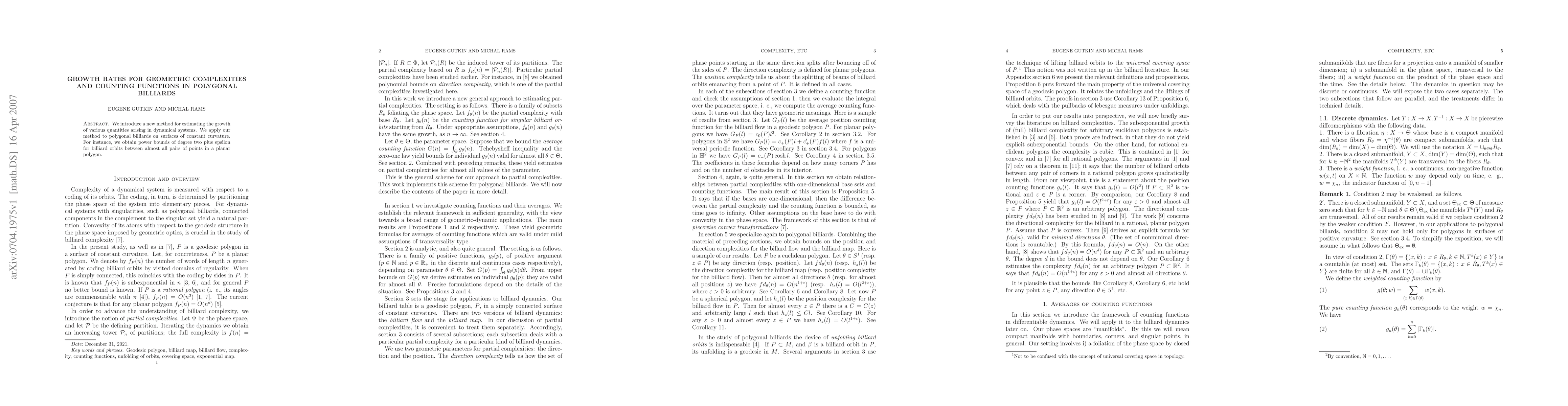 Researchers introduce a new method to estimate growth rates in dynamical systems, applying it to polygonal billiards on curved surfaces to find power bounds for the number of billiard orbits between almost all pairs of points.