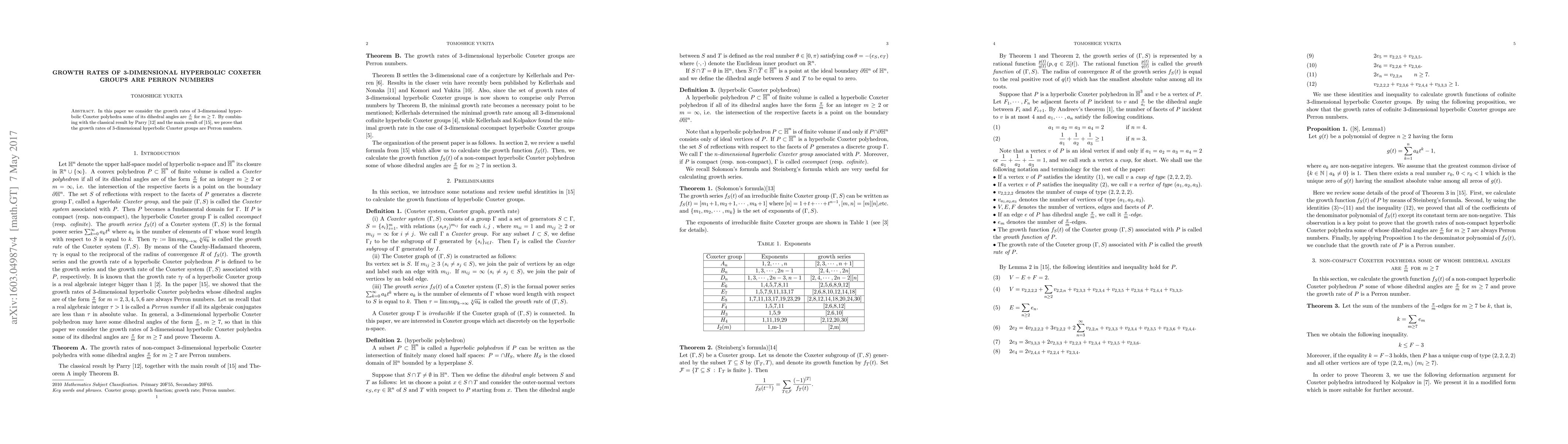 In this paper we consider the growth rates of 3-dimensional hyperbolic Coxeter polyhedra some of its dihedral angles are $\frac{\pi}{m}$ for $m\geq{7}$. By combining with the classical result by Parry \cite{Pa} and the main result of \cite{Y}, we prove that the growth rates of 3-dimensional hyperbolic Coxeter groups are Perron numbers.