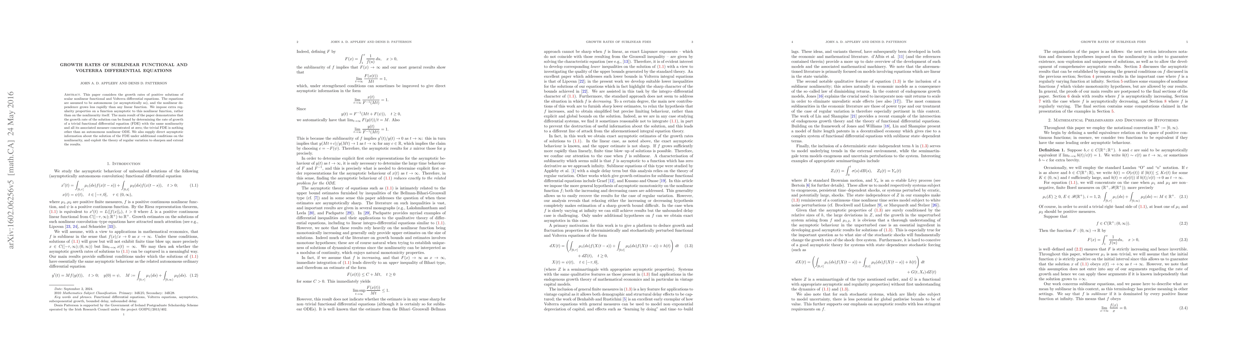 This paper considers the growth rates of positive solutions of scalar nonlinear functional and Volterra differential equations. The equations are assumed to be autonomous (or asymptotically so), and the nonlinear dependence grows less rapidly than any linear function. We impose extra regularity properties on a function asymptotic to this nonlinear function, rather than on the nonlinearity itself. The main result of the paper demonstrates that the growth rate of the solution can be found by determining the rate of growth of a trivial functional differential equation (FDE) with the same nonlinearity and all its associated measure concentrated at zero; the trivial FDE is nothing other than an autonomous nonlinear ODE. We also supply direct asymptotic information about the solution of the FDE under additional conditions on the nonlinearity, and exploit the theory of regular variation to sharpen and extend the results.