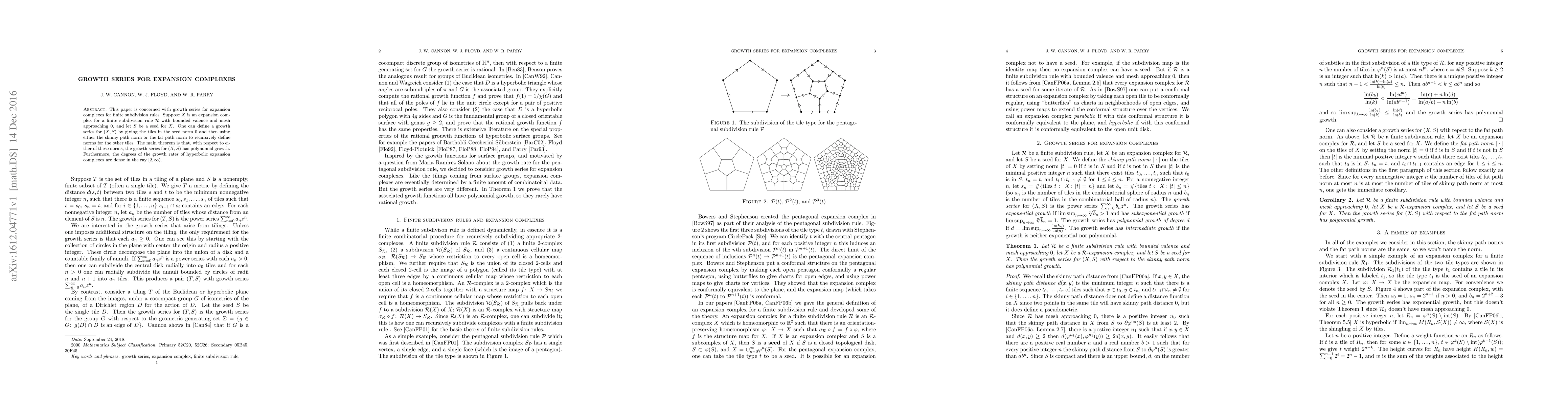 This paper is concerned with growth series for expansion complexes for finite subdivision rules. Suppose X is an expansion complex for a finite subdivision rule with bounded valence and mesh approaching 0, and let S be a seed for X. One can define a growth series for (X,S) by giving the tiles in the seed norm 0 and then using either the skinny path norm or the fat path norm to recursively define norms for the other tiles. The main theorem is that, with respect to either of these norms, the growth series for (X,S) has polynomial growth. Furthermore, the degrees of the growth rates of hyperbolic expansion complexes are dense in the ray [2,\infty).