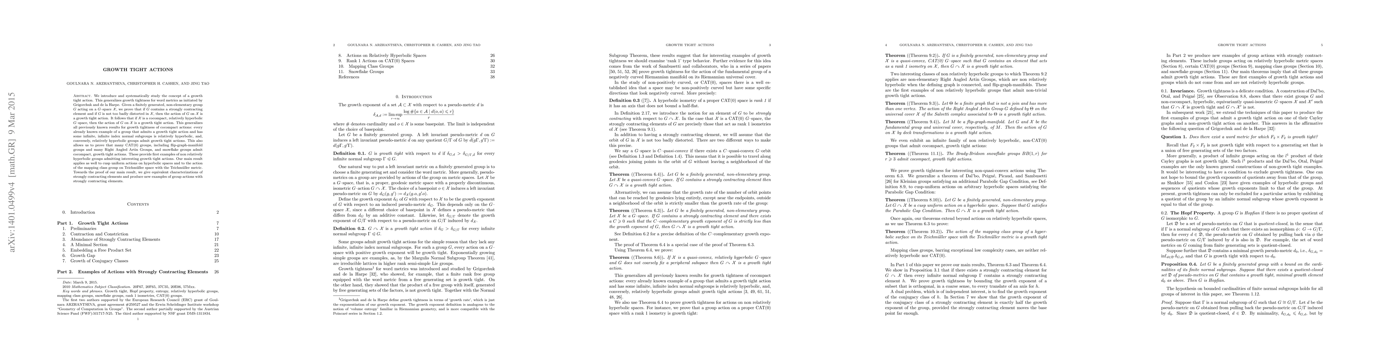 The paper introduces the concept of a growth tight action for finitely generated, non-elementary groups acting on $G$-spaces, generalizing previous results by Grigorchuk and de la Harpe. It shows that groups with strongly contracting elements and relatively hyperbolic structures exhibit these actions, including many CAT(0) groups and cusp uniform actions on hyperbolic spaces.