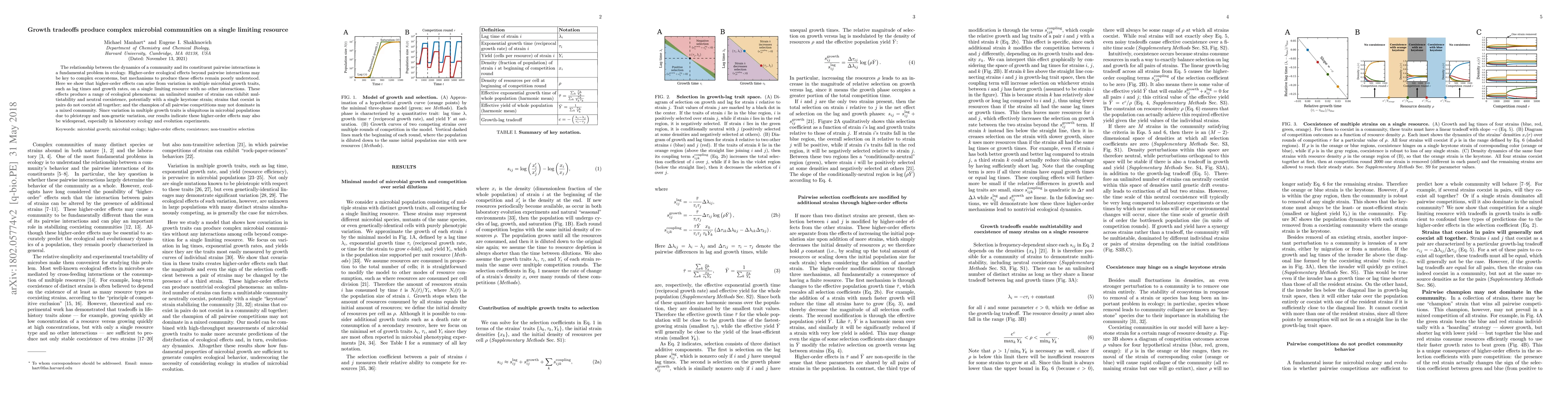 The relationship between the dynamics of a community and its constituent pairwise interactions is a fundamental problem in ecology. Higher-order ecological effects beyond pairwise interactions may be key to complex ecosystems, but mechanisms to produce these effects remain poorly understood. Here we show that higher-order effects can arise from variation in multiple microbial growth traits, such as lag times and growth rates, on a single limiting resource with no other interactions. These effects produce a range of ecological phenomena: an unlimited number of strains can exhibit multistability and neutral coexistence, potentially with a single keystone strain; strains that coexist in pairs do not coexist all together; and the champion of all pairwise competitions may not dominate in a mixed community. Since variation in multiple growth traits is ubiquitous in microbial populations due to pleiotropy and non-genetic variation, our results indicate these higher-order effects may also be widespread, especially in laboratory ecology and evolution experiments.