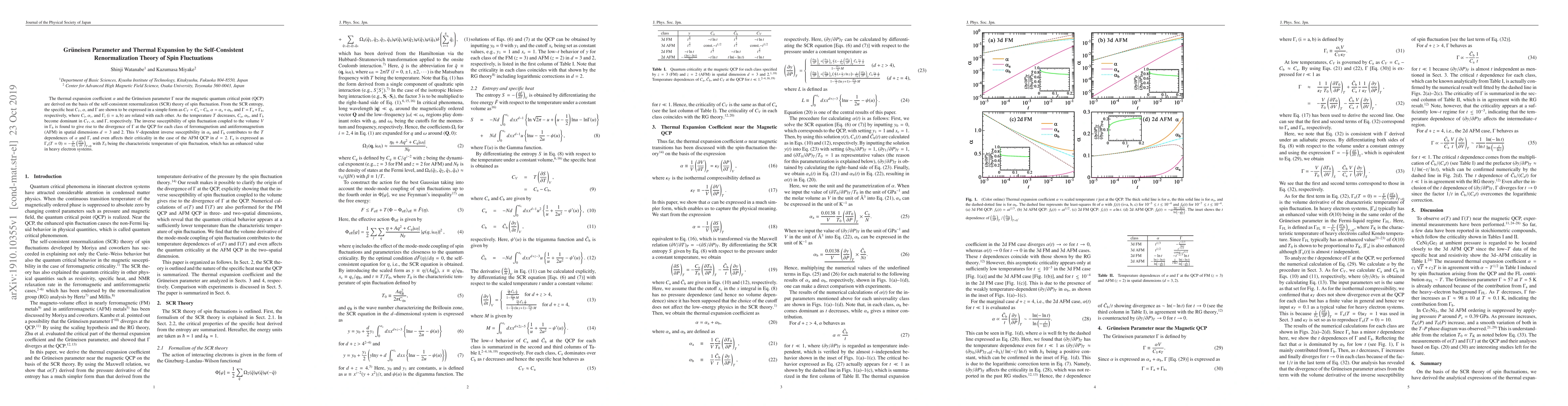 The thermal expansion coefficient $\alpha$ and the Gr\"{u}neisen parameter $\Gamma$ near the magnetic quantum critical point (QCP) are derived on the basis of the self-consistent renormalization (SCR) theory of spin fluctuation. From the SCR entropy, the specific heat $C_{V}$, $\alpha$, and $\Gamma$ are shown to be expressed in a simple form as $C_{V}=C_{\rm a}-C_{\rm b}$, $\alpha=\alpha_{\rm a}+\alpha_{\rm b}$, and $\Gamma=\Gamma_{\rm a}+\Gamma_{\rm b}$, respectively, where $C_{\rm i}$, $\alpha_{\rm i}$, and $\Gamma_{\rm i}$ $({\rm i}={\rm a}, {\rm b})$ are related with each other. As the temperature $T$ decreases, $C_{\rm a}$, $\alpha_{\rm b}$, and $\Gamma_{\rm b}$ become dominant in $C_{V}$, $\alpha$, and $\Gamma$, respectively. The inverse susceptibility of spin fluctuation coupled to the volume $V$ in $\Gamma_{\rm b}$ is found to give rise to the divergence of $\Gamma$ at the QCP for each class of ferromagnetism and antiferromagnetism (AFM) in spatial dimensions $d=3$ and $2$. This $V$-dependent inverse susceptibility in $\alpha_{b}$ and $\Gamma_{\rm b}$ contributes to the $T$ dependences of $\alpha$ and $\Gamma$, and even affects their criticality in the case of the AFM QCP in $d=2$. $\Gamma_{\rm a}$ is expressed as $\Gamma_{\rm a}(T=0)=-\frac{V}{T_0}\left(\frac{\partial T_0}{\partial V}\right)_{T=0}$ with $T_0$ being the characteristic temperature of spin fluctuation, which has an enhanced value in heavy electron systems.