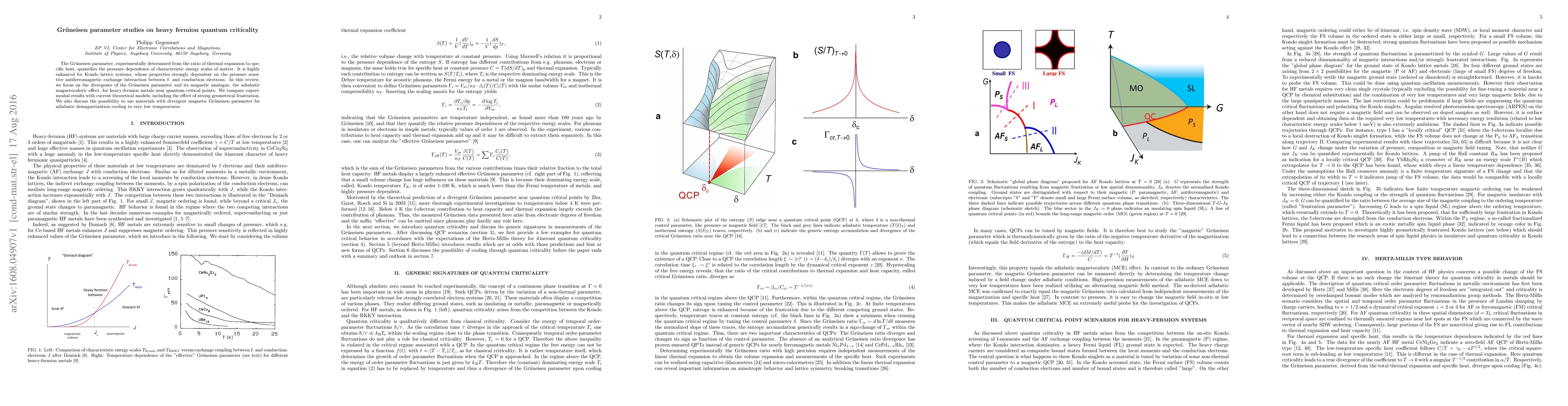 This paper reviews the Gr\"uneisen parameter's behavior in heavy fermion metals near quantum critical points, emphasizing its divergence and magnetic analogue, and compares experimental findings with theoretical models. It also explores the potential use of materials with a divergent magnetic Gr\"uneisen parameter for adiabatic demagnetization cooling.
