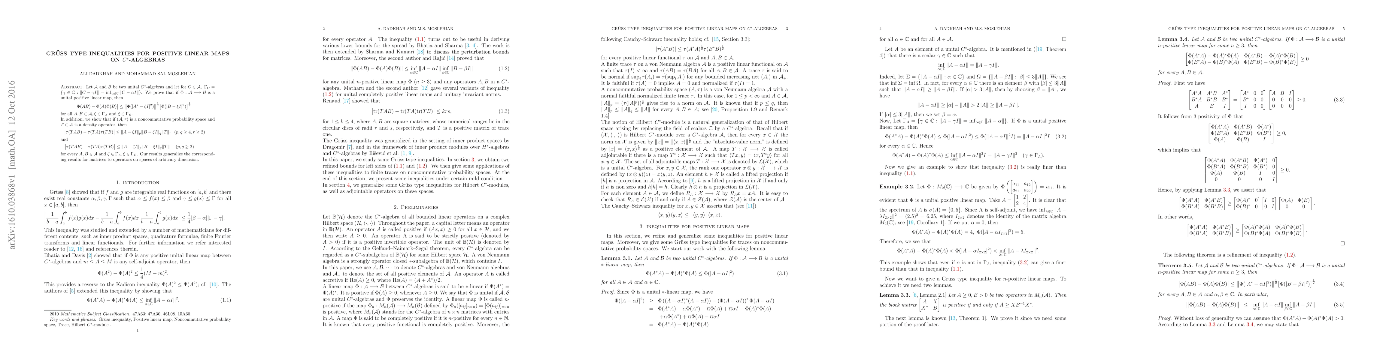 Let $\mathcal{A}$ and $\mathcal{B}$ be two unital $C^*$-algebras and let for $C\in\mathcal{A},\ \Gamma_C=\{\gamma \in \mathbb{C} : \|C-\gamma I\|=\inf_{\alpha\in \mathbb{C}} \|C-\alpha I\|\}$. We prove that if $\Phi :\mathcal{A} \longrightarrow \mathcal{B}$ is a unital positive linear map, then \begin{eqnarray*} \big|\Phi(AB)-\Phi(A)\Phi(B)\big| \leq \big\|\Phi(|A^*-\zeta I|^2)\big\|^\frac{1}{2} \big[\Phi(|B-\xi I|^2)\big]^\frac{1}{2} \end{eqnarray*} for all $A,B\in\mathcal{A}, \zeta \in \Gamma_A$ and $\xi\in\Gamma_B.$\\ In addition, we show that if $(\mathcal{A},\tau)$ is a noncommutative probability space and $T \in \mathcal{A}$ is a density operator, then \begin{eqnarray*} \ \ \big|\tau(TAB)-\tau(TA)\tau(TB)\big|\leq \|A-\zeta I\|_p\|B-\xi I\|_q\|T\|_r \ \ (p,q\geq 4, r\geq 2) \end{eqnarray*} and \begin{eqnarray*} \big|\tau(TAB)-\tau(TA)\tau(TB)\big|\leq \|A-\zeta I\|_p\|B-\xi I\|_q\|T\| \ \ \ \ (p,q\geq 2)\ \ \ \ \ \end{eqnarray*} for every $A,B \in \mathcal{A}$ and $\zeta \in \Gamma_A,\xi \in \Gamma_B$. Our results generalize the corresponding results for matrices to operators on spaces of arbitrary dimension.