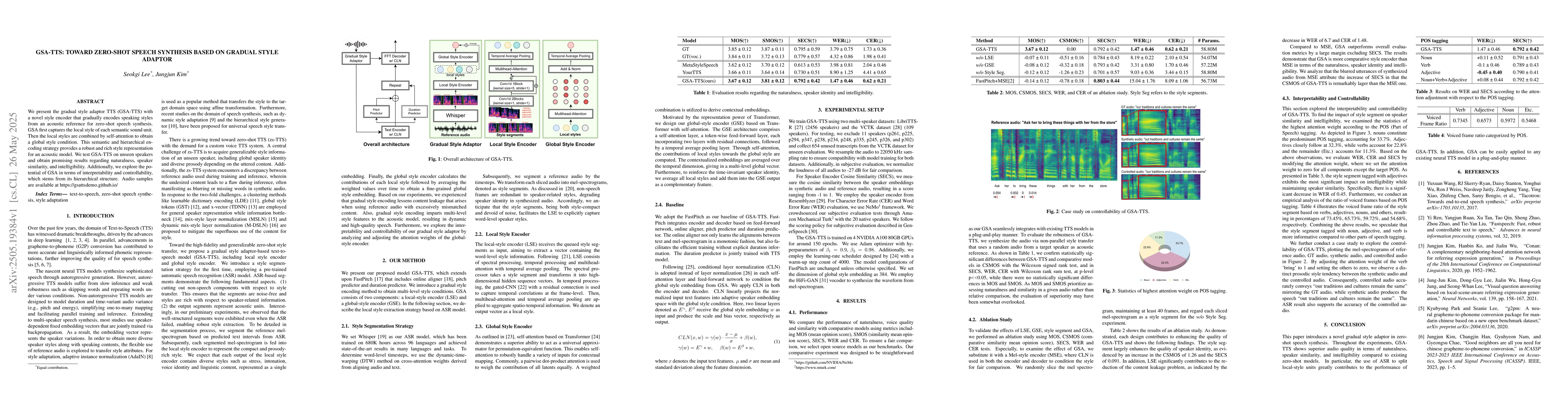 The research introduces GSA-TTS, a gradual style adaptor TTS system with a novel style encoder that captures local styles of each semantic sound unit and combines them using self-attention to obtain a global style condition for zero-shot speech synthesis.