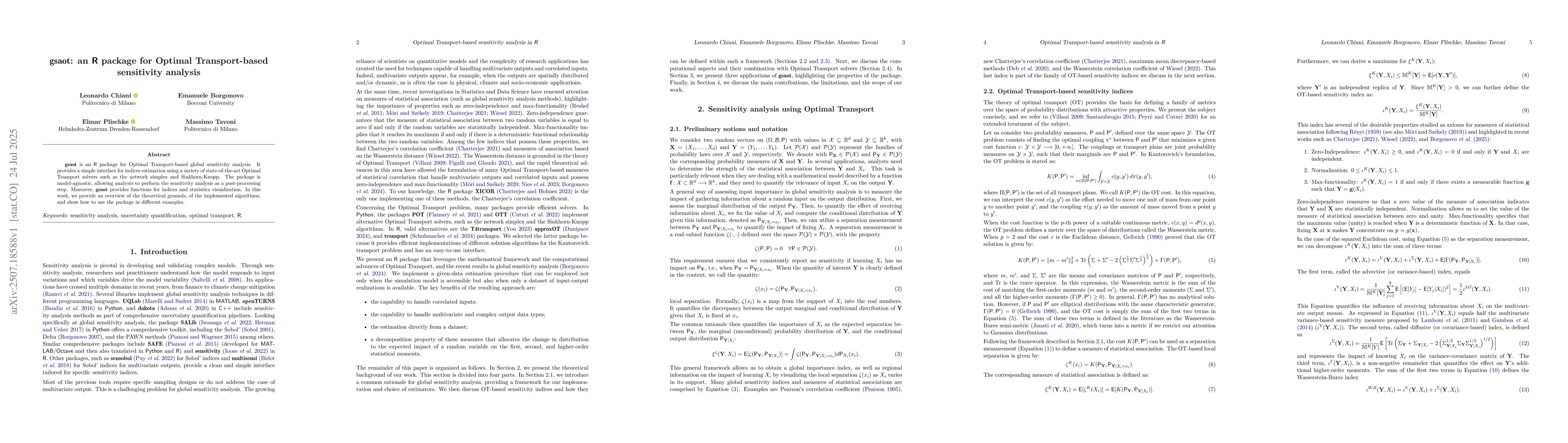 gsaot is an R package for Optimal Transport-based global sensitivity analysis. It provides a simple interface for indices estimation using a variety of state-of-the-art Optimal Transport solvers such as the network simplex and Sinkhorn-Knopp. The package is model-agnostic, allowing analysts to perform the sensitivity analysis as a post-processing step. Moreover, gsaot provides functions for indices and statistics visualization. In this work, we provide an overview of the theoretical grounds, of the implemented algorithms, and show how to use the package in different examples.