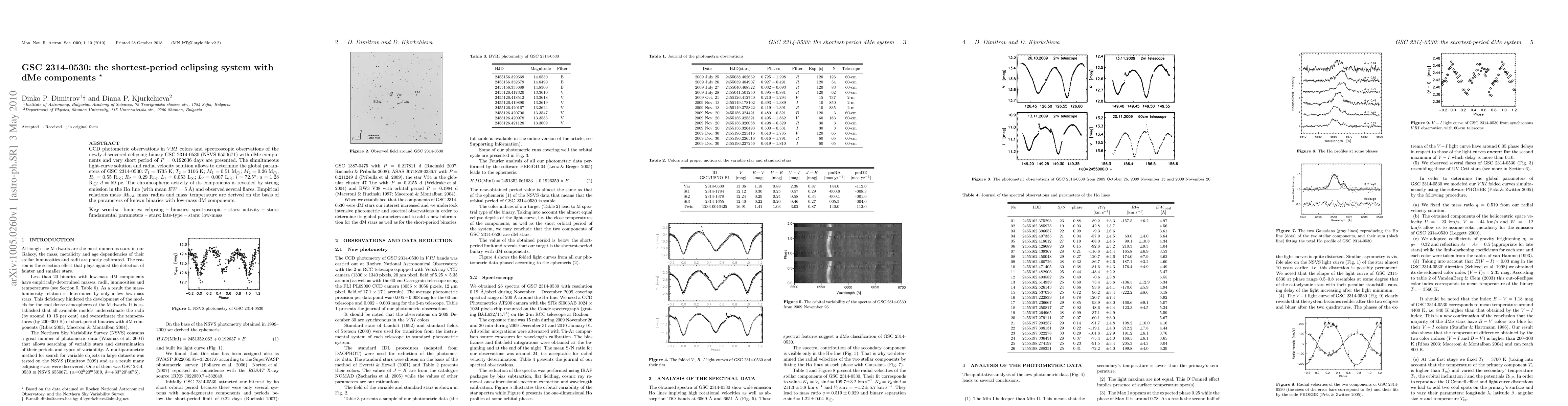 CCD photometric observations in VRI colors and spectroscopic observations of the newly discovered eclipsing binary GSC 2314-0530 (NSVS 6550671) with dMe components and very short period of P=0.192636 days are presented. The simultaneous light-curve solution and radial velocity solution allows to determine the global parameters of GSC 2314-0530: T_{1}=3735 K; T_{2}=3106 K; M_{1}=0.51 M_sun; M_{2}=0.26 M_sun; R_{1}=0.55 R_sun; R_{2}=0.29 R_sun; L_{1}=0.053 L_sun; L_{2}=0.007 L_sun; i=72.5 degr; a=1.28 R_sun; d=59 pc. The chromospheric activity of its components is revealed by strong emission in the H_alpha line (with mean EW=5 A) and observed several flares. Empirical relations mass-M_{bol}, mass-radius and mass-temperature are derived on the basis of the parameters of known binaries with low-mass dM components.