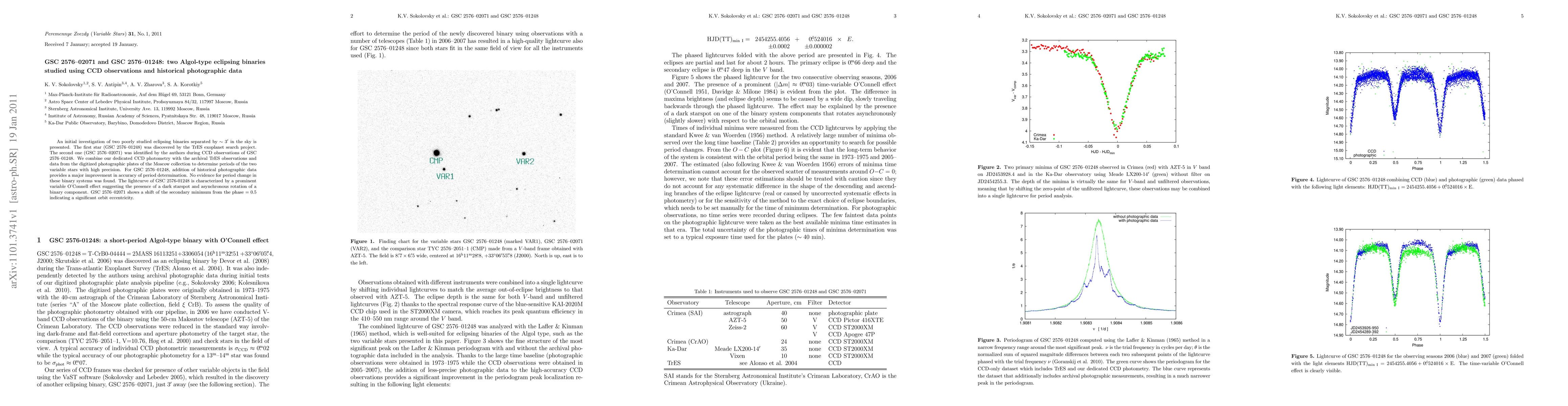 An initial investigation of two poorly studied eclipsing binaries separated by ~3' in the sky is presented. The first star (GSC 2576-01248) was discovered by the TrES exoplanet search project. The second one (GSC 2576-02071) was identified by the authors during CCD observations of GSC 2576-01248. We combine our dedicated CCD photometry with the archival TrES observations and data from the digitized photographic plates of the Moscow collection to determine periods of the two variable stars with high precision. For GSC 2576-01248, addition of historical photographic data provides a major improvement in accuracy of period determination. No evidence for period change in these binary systems was found. The lightcurve of GSC 2576-01248 is characterized by a prominent variable O'Connell effect suggesting the presence of a dark starspot and asynchronous rotation of a binary component. GSC 2576-02071 shows a shift of the secondary minimum from the phase =0.5 indicating a significant orbit eccentricity.