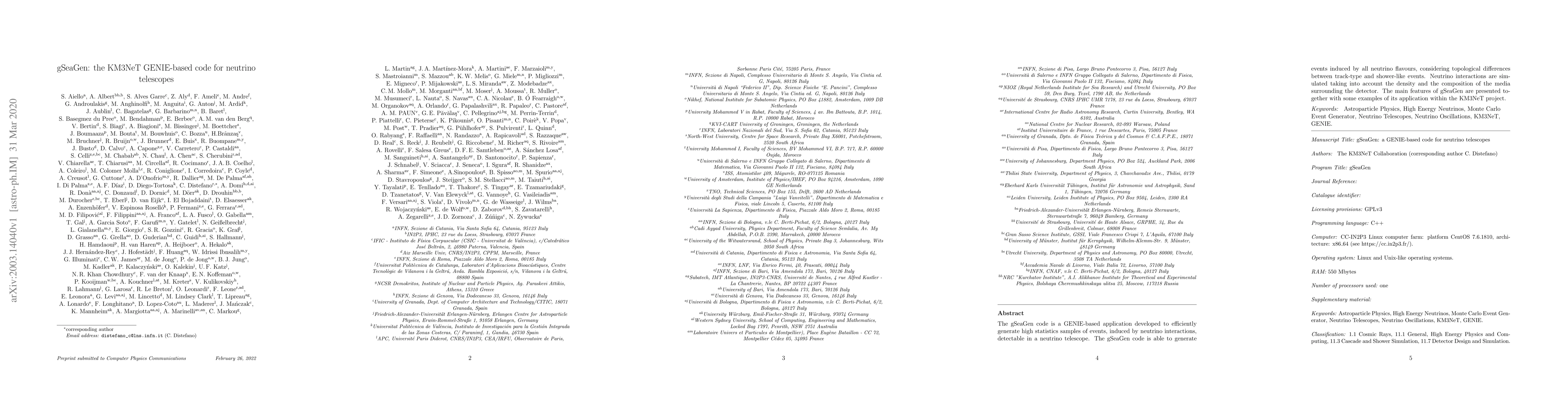 The gSeaGen code generates high statistics samples of neutrino events for neutrino telescopes, considering various flavours and media interactions. It efficiently simulates neutrino interactions to aid in the detection of neutrinos.