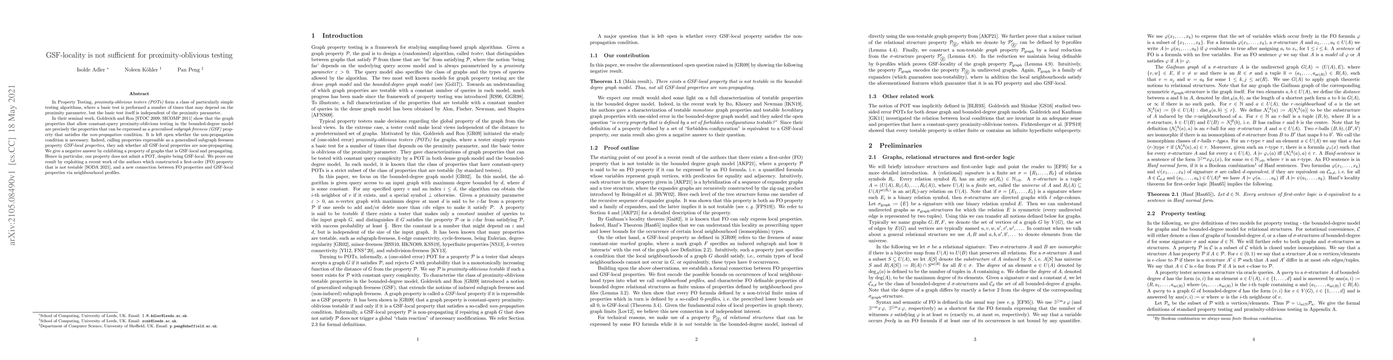 This paper demonstrates that GSF-locality alone is insufficient for proximity-oblivious testing by presenting a graph property that is GSF-local but also propagating, thus disproving the necessity of the non-propagation condition for constant-query proximity-oblivious testing.