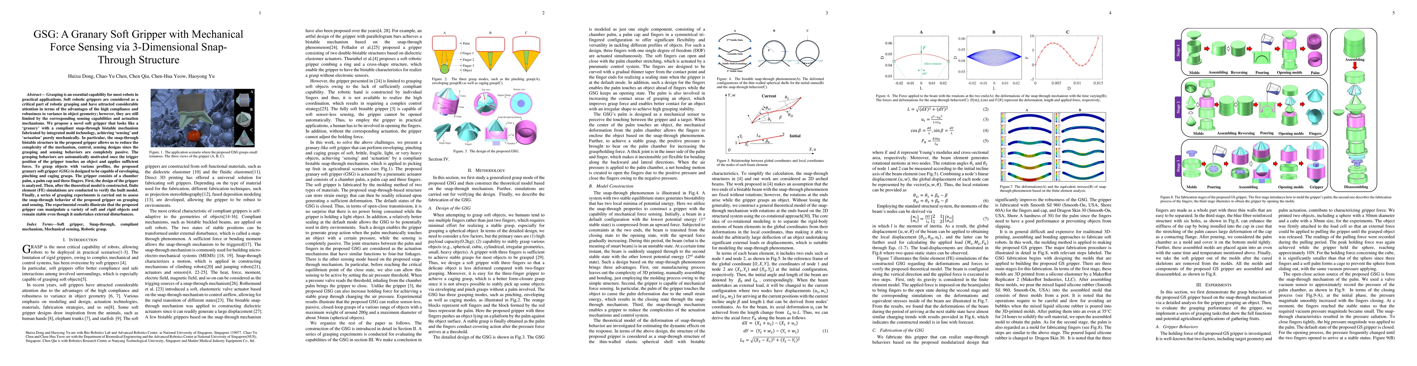This paper introduces a novel granary-shaped soft gripper (GSG) utilizing a 3D snap-through bistable mechanism for mechanical force sensing and actuation. The design enables passive grasping and sensing without complex control mechanisms, demonstrating versatility in enveloping, pinching, and caging grasps.