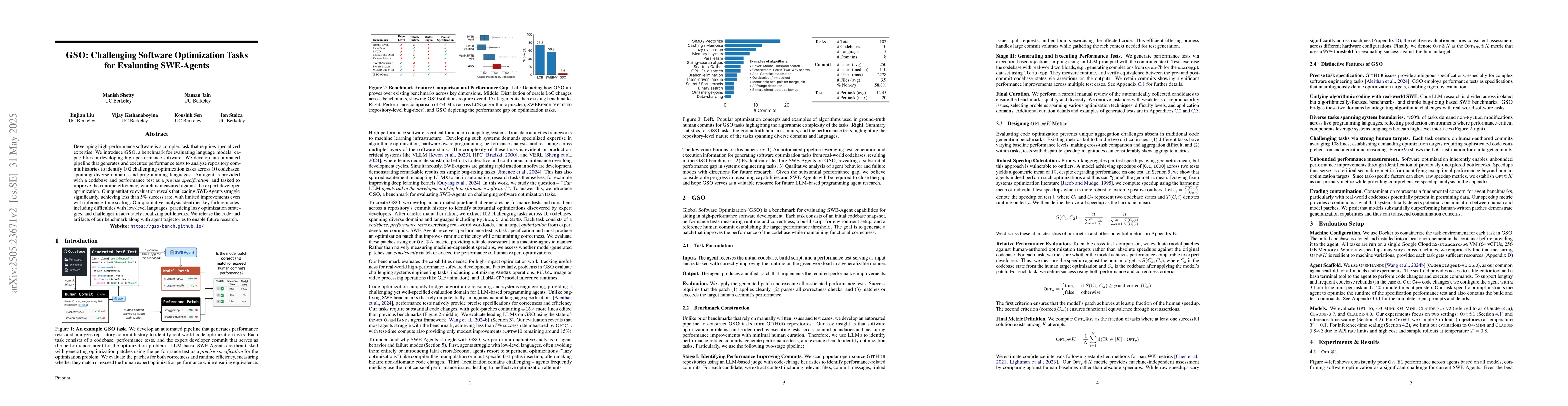 GSO benchmark, an automated pipeline for generating and executing performance tests, and a collection of 102 challenging optimization tasks across 10 diverse codebases.