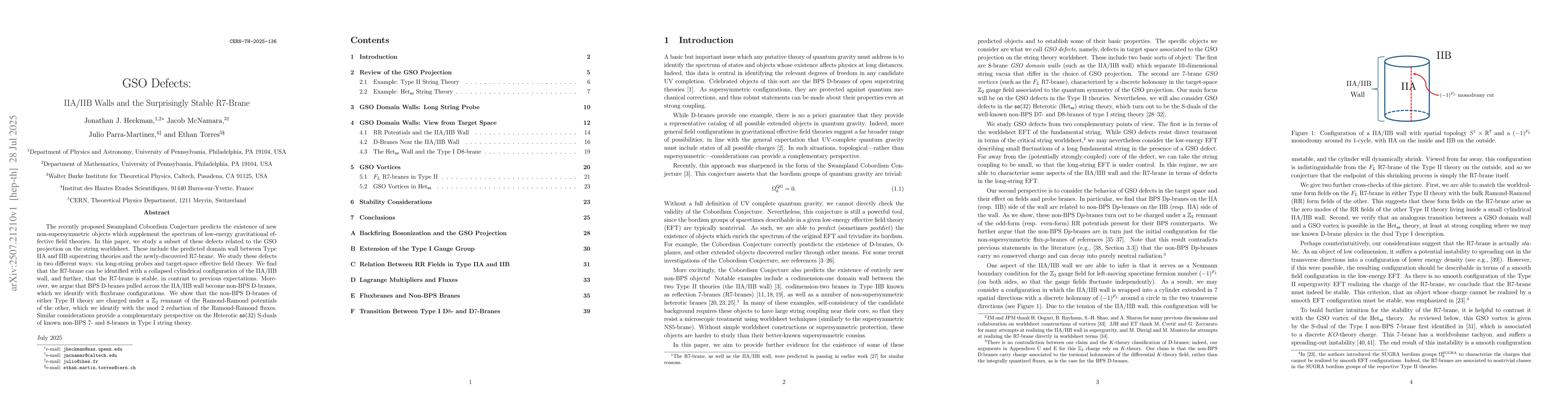 The recently proposed Swampland Cobordism Conjecture predicts the existence of new non-supersymmetric objects which supplement the spectrum of low-energy gravitational effective field theories. In this paper, we study a subset of these defects related to the GSO projection on the string worldsheet. These include the predicted domain wall between Type IIA and IIB superstring theories and the newly-discovered $\mathrm{R}7$-brane. We study these defects in two different ways: via long-string probes and target-space effective field theory. We find that the $\mathrm{R}7$-brane can be identified with a collapsed cylindrical configuration of the IIA/IIB wall, and further, that the $\mathrm{R}7$-brane is stable, in contrast to previous expectations. Moreover, we argue that BPS D-branes pulled across the IIA/IIB wall become non-BPS D-branes, which we identify with fluxbrane configurations. We show that the non-BPS D-branes of either Type II theory are charged under a $\mathbb{Z}_2$ remnant of the Ramond-Ramond potentials of the other, which we identify with the mod 2 reduction of the Ramond-Ramond fluxes. Similar considerations provide a complementary perspective on the Heterotic ${\mathfrak{so}(32)}$ S-duals of known non-BPS 7- and 8-branes in Type I string theory.
