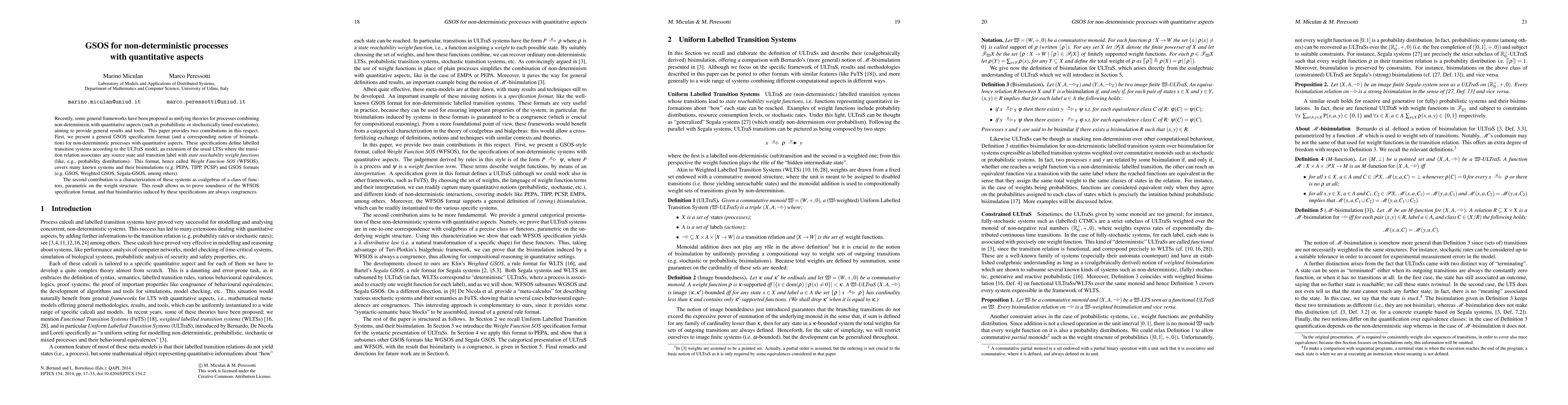 This paper introduces a general GSOS specification format (Weight Function SOS) for non-deterministic processes incorporating quantitative aspects like probabilistic or stochastically timed executions. It also characterizes these systems as coalgebras, proving the soundness of the WFSOS format and ensuring bisimilarities induced are congruences.