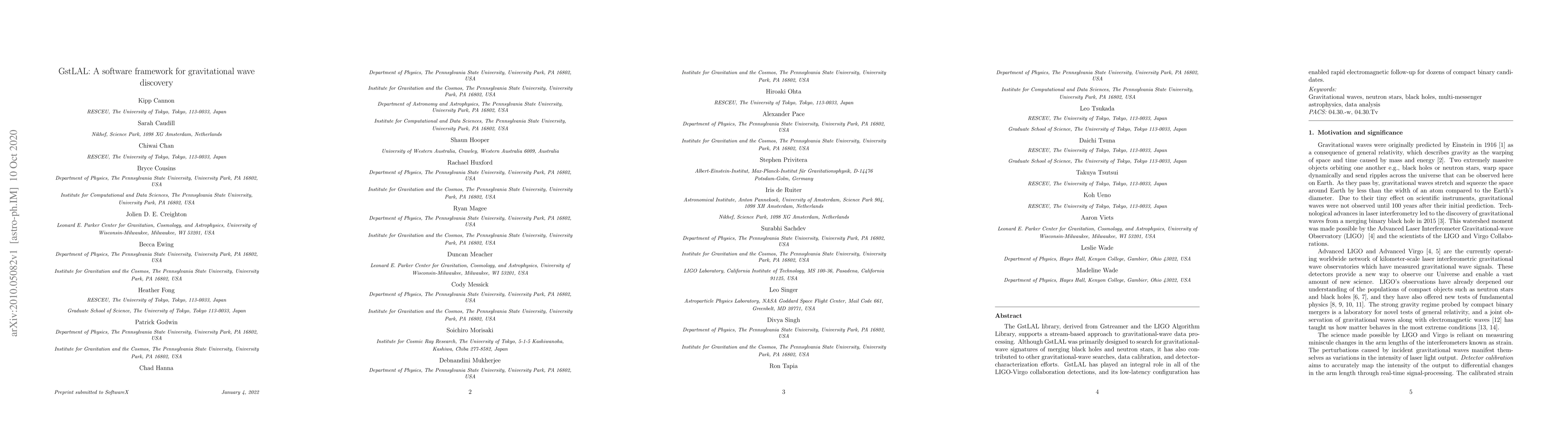 The GstLAL software framework has been instrumental in discovering gravitational waves from merging black holes and neutron stars, with a low-latency configuration enabling rapid follow-up for dozens of compact binary candidates.