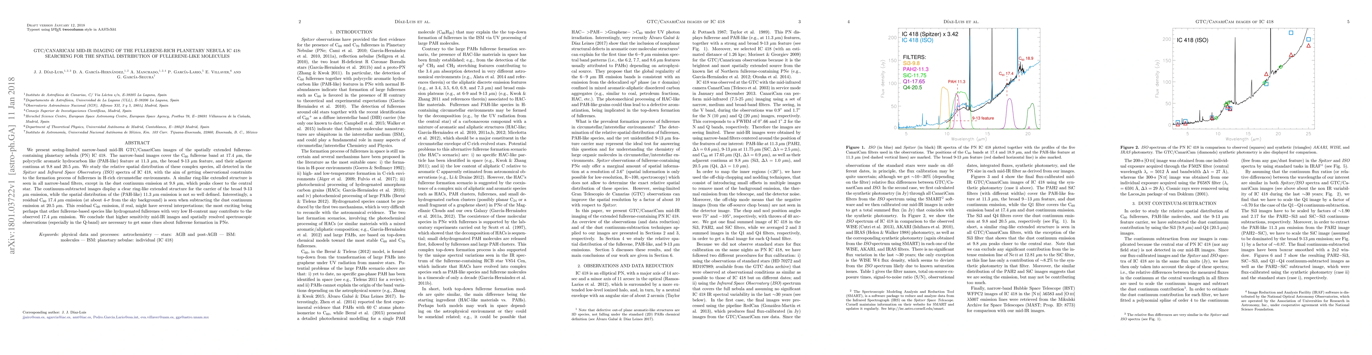 This study uses mid-IR imaging to investigate the spatial distribution of fullerene-like molecules in the planetary nebula IC 418, revealing a ring-like structure for broad 9-13 μm emission carriers. A residual C60 emission suggests potential contributions from other fullerene-based species, highlighting the need for higher sensitivity observations.