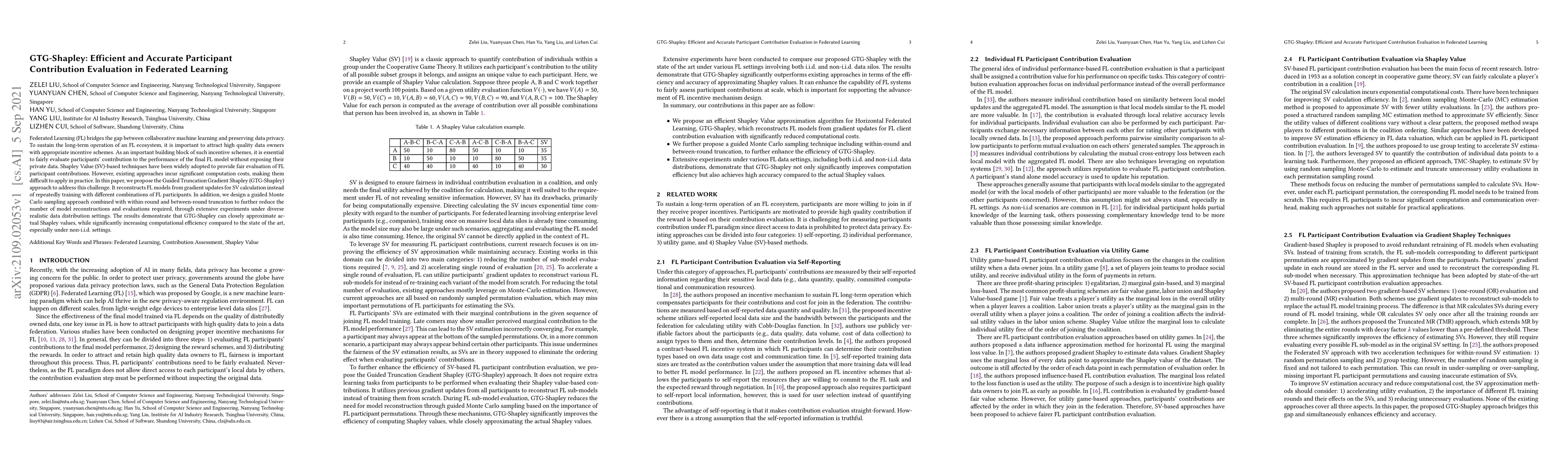 Federated Learning (FL) bridges the gap between collaborative machine learning and preserving data privacy. To sustain the long-term operation of an FL ecosystem, it is important to attract high quality data owners with appropriate incentive schemes. As an important building block of such incentive schemes, it is essential to fairly evaluate participants' contribution to the performance of the final FL model without exposing their private data. Shapley Value (SV)-based techniques have been widely adopted to provide fair evaluation of FL participant contributions. However, existing approaches incur significant computation costs, making them difficult to apply in practice. In this paper, we propose the Guided Truncation Gradient Shapley (GTG-Shapley) approach to address this challenge. It reconstructs FL models from gradient updates for SV calculation instead of repeatedly training with different combinations of FL participants. In addition, we design a guided Monte Carlo sampling approach combined with within-round and between-round truncation to further reduce the number of model reconstructions and evaluations required, through extensive experiments under diverse realistic data distribution settings. The results demonstrate that GTG-Shapley can closely approximate actual Shapley values, while significantly increasing computational efficiency compared to the state of the art, especially under non-i.i.d. settings.