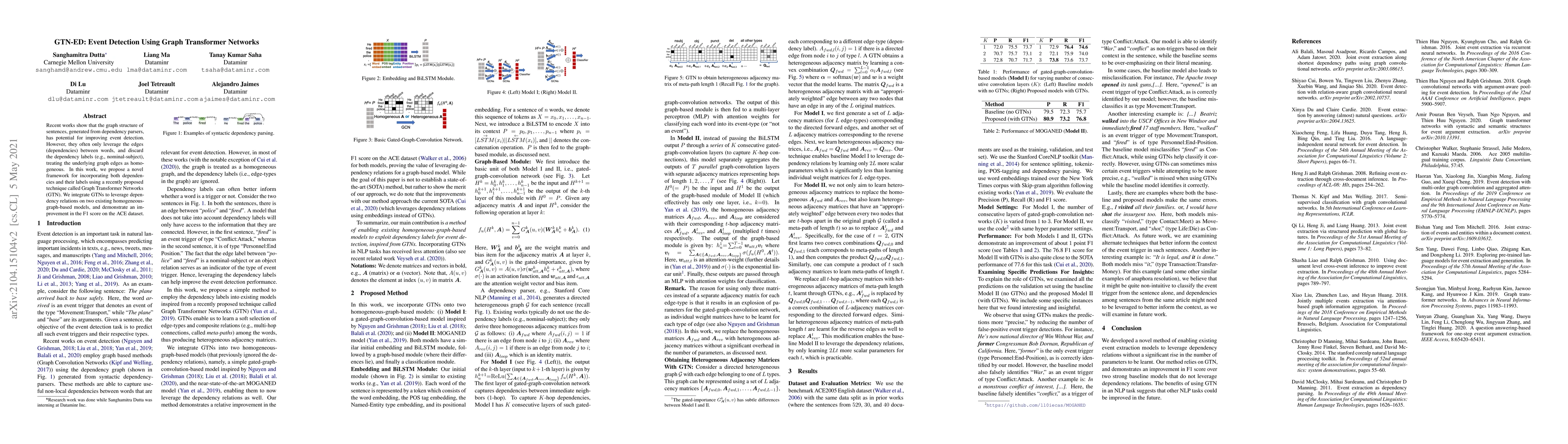 This paper proposes a novel framework using Graph Transformer Networks (GTN) to enhance event detection by leveraging both word dependencies and their labels in sentence graphs. The approach improves upon existing homogeneous-graph-based models, resulting in a higher F1 score on the ACE dataset.