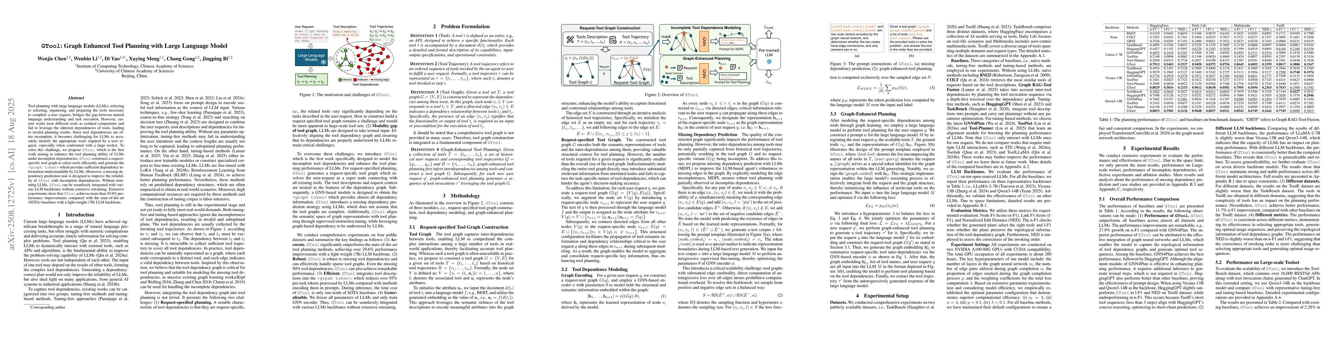 the tool planning ability of LLMs under incomplete dependencies. \texttt{GTool}