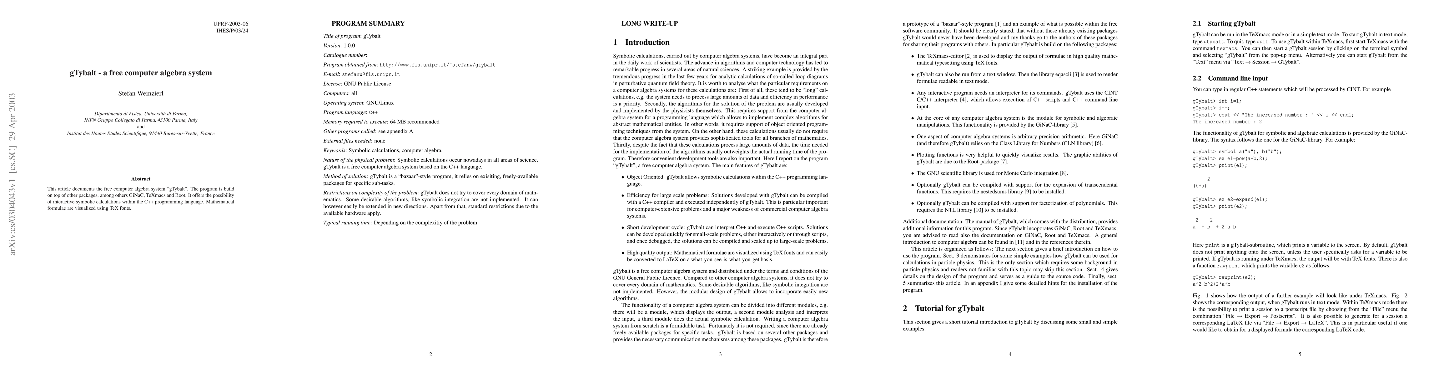 This article documents the free computer algebra system "gTybalt". The program is build on top of other packages, among others GiNaC, TeXmacs and Root. It offers the possibility of interactive symbolic calculations within the C++ programming language. Mathematical formulae are visualized using TeX fonts.