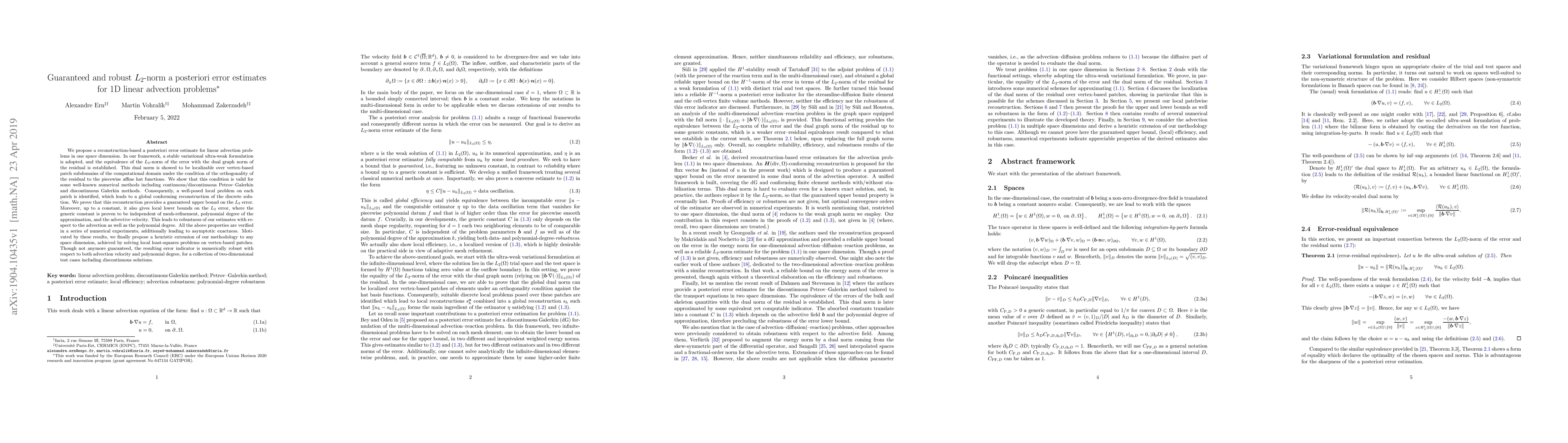 Researchers developed a reconstruction-based method to estimate errors in 1D linear advection problems, providing guaranteed and robust $L_2$-norm error estimates that are independent of mesh refinement, polynomial degree, and advection velocity.