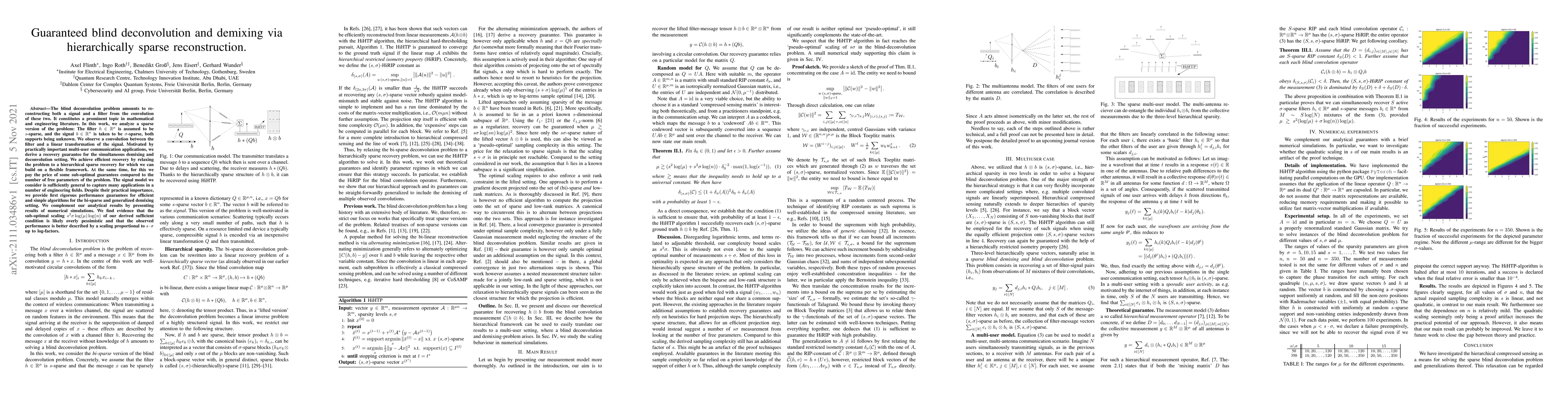 This paper addresses the blind deconvolution problem by proposing a sparse reconstruction approach for recovering both a sparse filter and a sparse signal from their convolution. It provides theoretical guarantees for efficient recovery in a hierarchical sparse framework, demonstrating practical relevance for multi-user communication applications and showing promising empirical results that suggest better performance than the derived theoretical bounds.