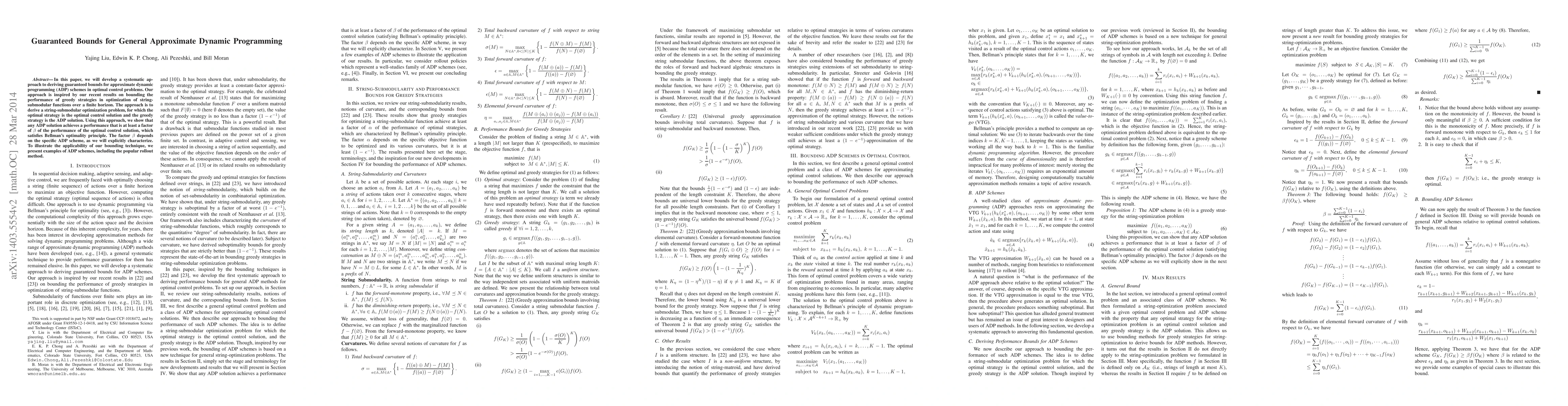 In this paper, we will develop a systematic approach to deriving guaranteed bounds for approximate dynamic programming (ADP) schemes in optimal control problems. Our approach is inspired by our recent results on bounding the performance of greedy strategies in optimization of string-submodular functions over a finite horizon. The approach is to derive a string-submodular optimization problem, for which the optimal strategy is the optimal control solution and the greedy strategy is the ADP solution. Using this approach, we show that any ADP solution achieves a performance that is at least a factor of $\beta$ of the performance of the optimal control solution, which satisfies Bellman's optimality principle. The factor $\beta$ depends on the specific ADP scheme, as we will explicitly characterize. To illustrate the applicability of our bounding technique, we present examples of ADP schemes, including the popular rollout method.