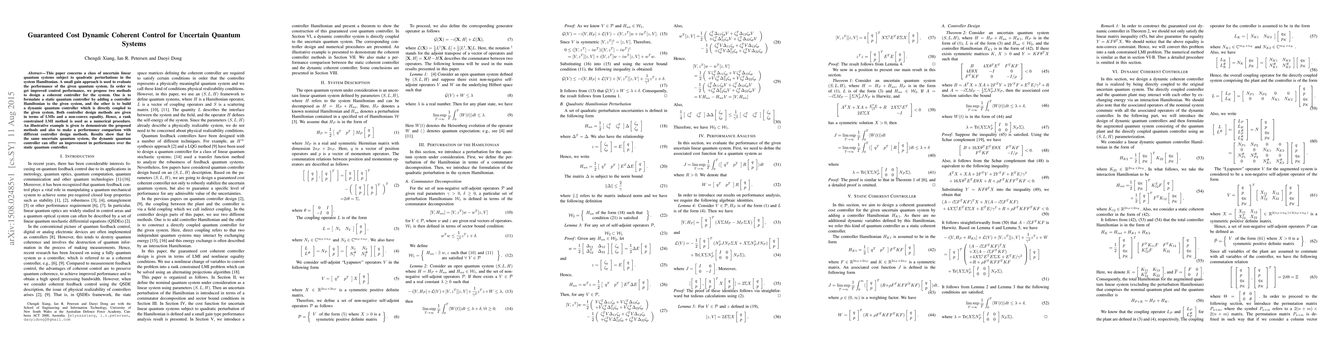 This paper concerns a class of uncertain linear quantum systems subject to quadratic perturbations in the system Hamiltonian. A small gain approach is used to evaluate the performance of the given quantum system. In order to get improved control performance, we propose two methods to design a coherent controller for the system. One is to formulate a static quantum controller by adding a controller Hamiltonian to the given system, and the other is to build a dynamic quantum controller which is directly coupled to the given system. Both controller design methods are given in terms of LMIs and a non-convex equality. Hence, a rank constrained LMI method is used as a numerical procedure. An illustrative example is given to demonstrate the proposed methods and also to make a performance comparison with different controller design methods. Results show that for the same uncertain quantum system, the dynamic quantum controller can offer an improvement in performance over the static quantum controller.
