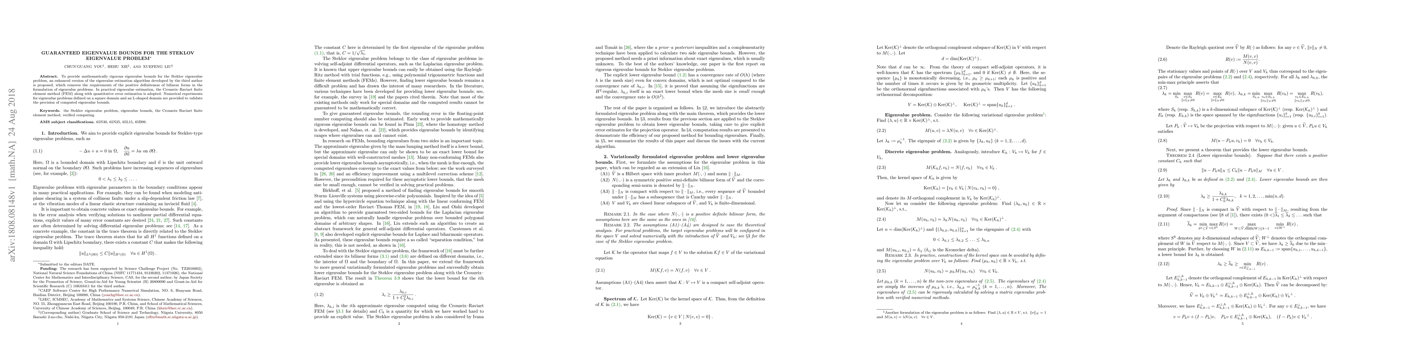 This paper proposes an improved eigenvalue estimation algorithm for the Steklov eigenvalue problem, eliminating the need for positive definiteness in bilinear forms. The Crouzeix-Raviart finite element method is used for practical computations, and numerical experiments on square and L-shaped domains validate the accuracy of the computed eigenvalue bounds.