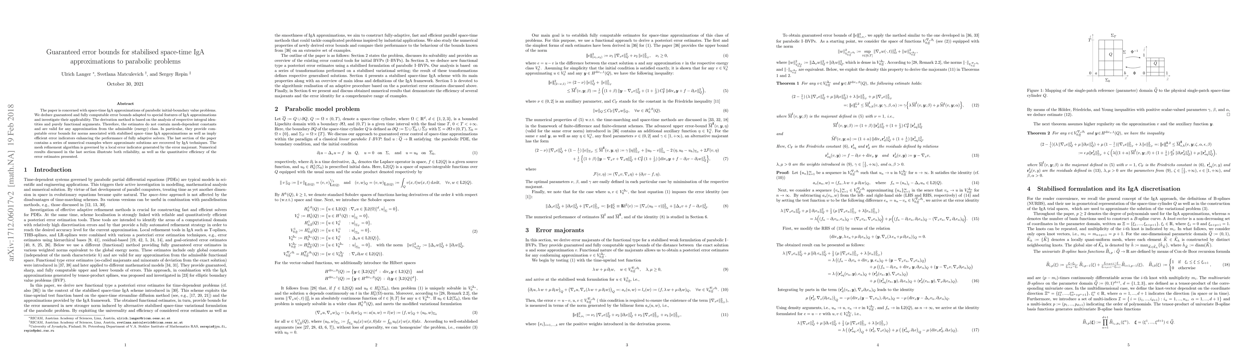 This paper develops guaranteed error control bounds for stabilised space-time IgA approximations to parabolic problems, providing fully computable estimates valid for any admissible approximation without mesh-dependent constants. Numerical examples demonstrate the reliability and efficiency of the proposed error indicators in adaptive solvers.