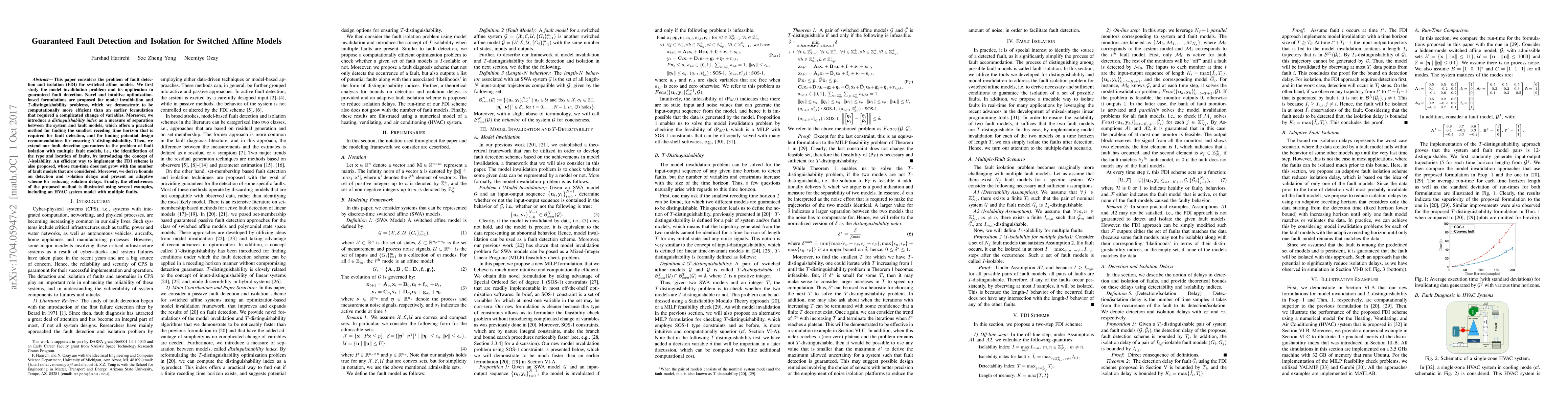 This paper proposes optimization-based formulations for efficient fault detection and isolation in switched affine models, introducing a distinguishability index for practical fault detection and an adaptive scheme for reducing isolation delays. The method is demonstrated through examples, including an HVAC system model.