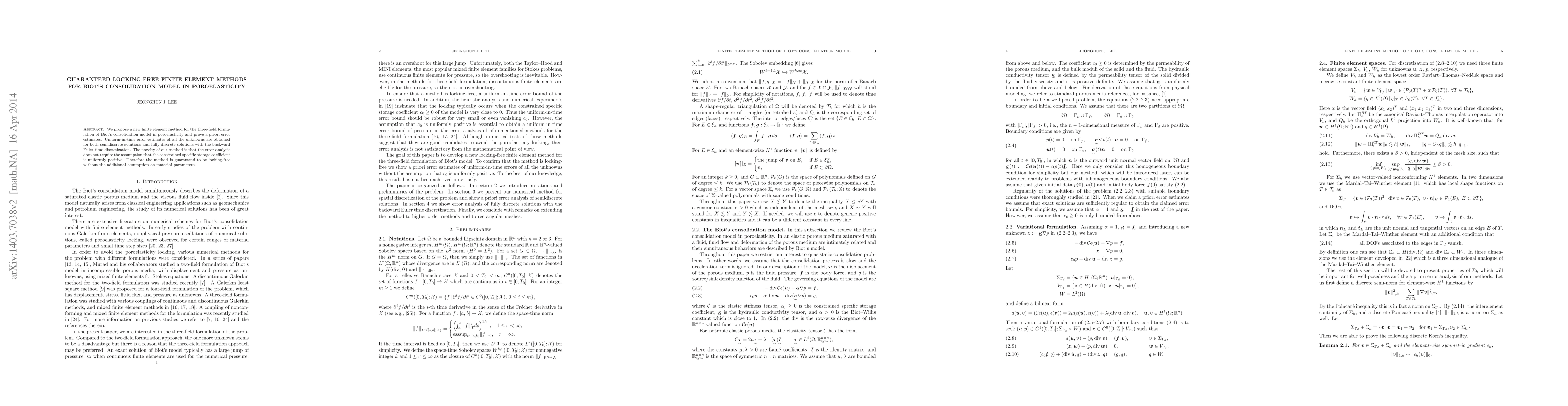 The research proposes a new finite element method for Biot's consolidation model in poroelasticity, proving a priori error estimates for both semidiscrete and fully discrete solutions with backward Euler time discretization.