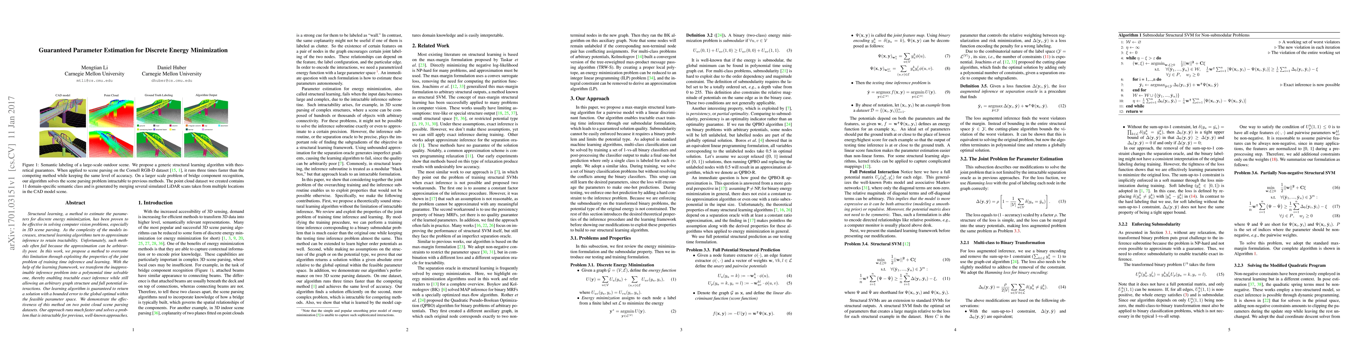 Structural learning, a method to estimate the parameters for discrete energy minimization, has been proven to be effective in solving computer vision problems, especially in 3D scene parsing. As the complexity of the models increases, structural learning algorithms turn to approximate inference to retain tractability. Unfortunately, such methods often fail because the approximation can be arbitrarily poor. In this work, we propose a method to overcome this limitation through exploiting the properties of the joint problem of training time inference and learning. With the help of the learning framework, we transform the inapproximable inference problem into a polynomial time solvable one, thereby enabling tractable exact inference while still allowing an arbitrary graph structure and full potential interactions. Our learning algorithm is guaranteed to return a solution with a bounded error to the global optimal within the feasible parameter space. We demonstrate the effectiveness of this method on two point cloud scene parsing datasets. Our approach runs much faster and solves a problem that is intractable for previous, well-known approaches.