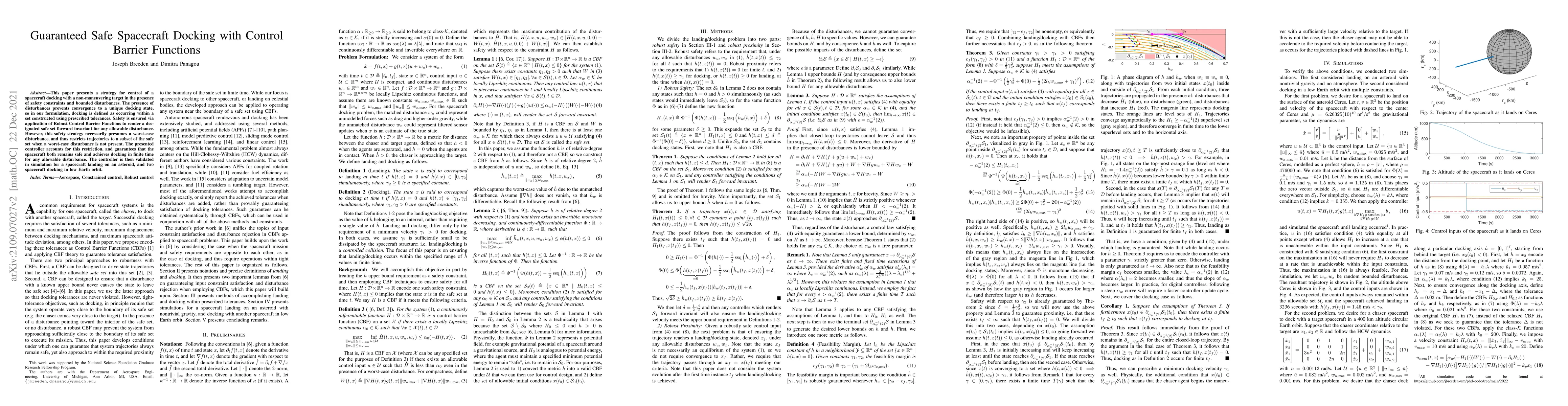 This paper proposes a control strategy using Robust Control Barrier Functions to ensure safe spacecraft docking under disturbances, defining docking within tolerances and guaranteeing safety in finite time. The controller is validated through simulations for asteroid landing and low Earth orbit docking scenarios.