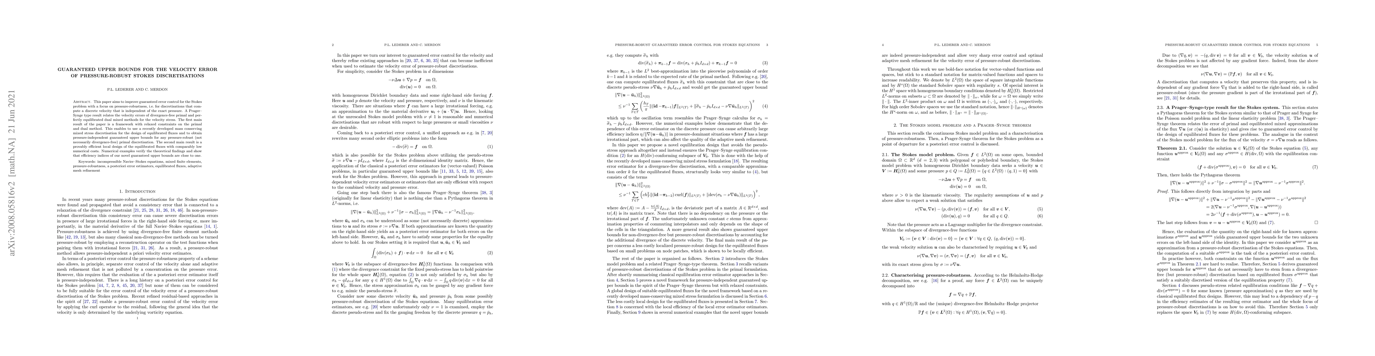 Researchers develop a framework for pressure-robust Stokes discretizations, providing guaranteed upper bounds for velocity error that do not depend on exact pressure values.