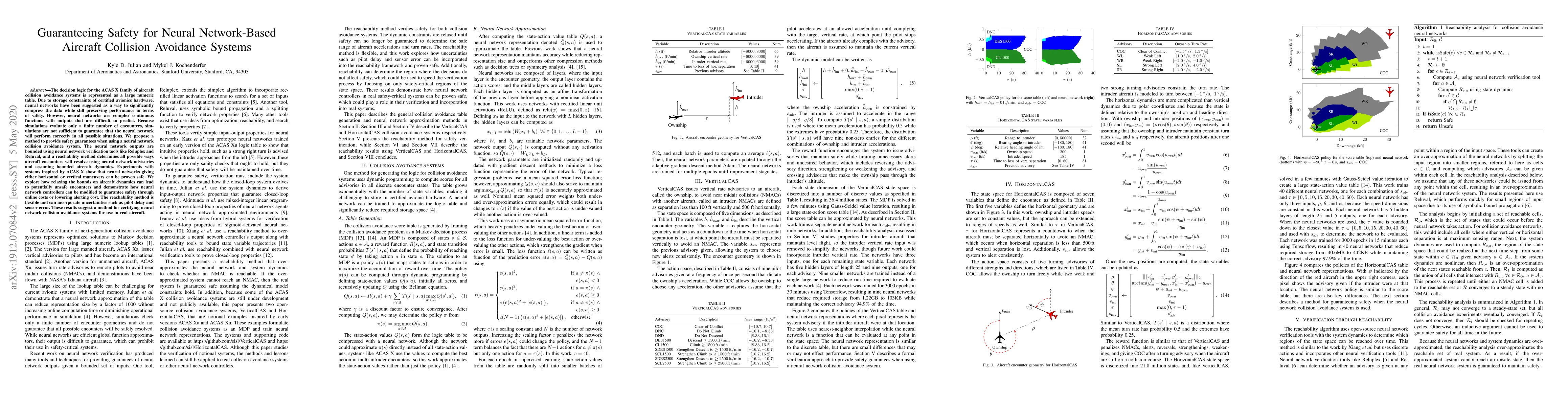 This paper proposes a method to ensure the safety of neural network-based aircraft collision avoidance systems by bounding neural network outputs using verification tools and reachability analysis. The method accounts for uncertainties and demonstrates its effectiveness through experiments with systems inspired by ACAS X.