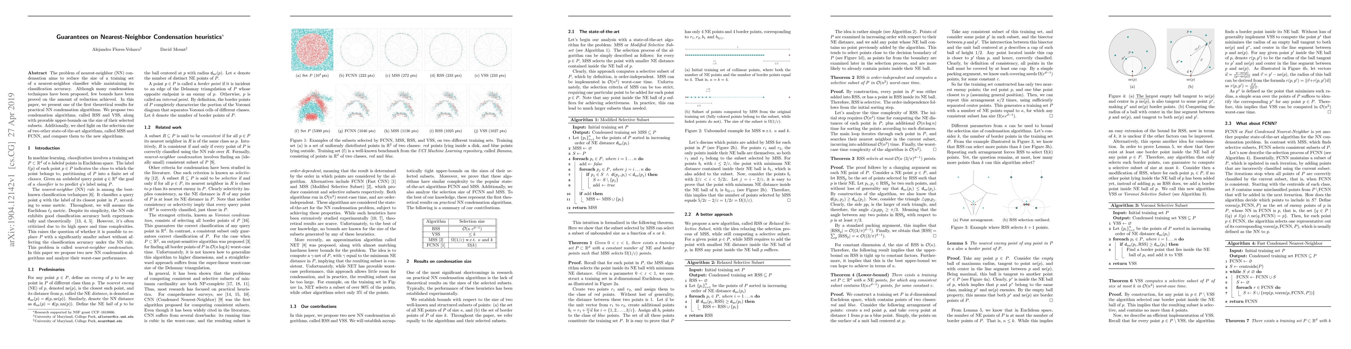 The problem of nearest-neighbor (NN) condensation aims to reduce the size of a training set of a nearest-neighbor classifier while maintaining its classification accuracy. Although many condensation techniques have been proposed, few bounds have been proved on the amount of reduction achieved. In this paper, we present one of the first theoretical results for practical NN condensation algorithms. We propose two condensation algorithms, called RSS and VSS, along with provable upper-bounds on the size of their selected subsets. Additionally, we shed light on the selection size of two other state-of-the-art algorithms, called MSS and FCNN, and compare them to the new algorithms.